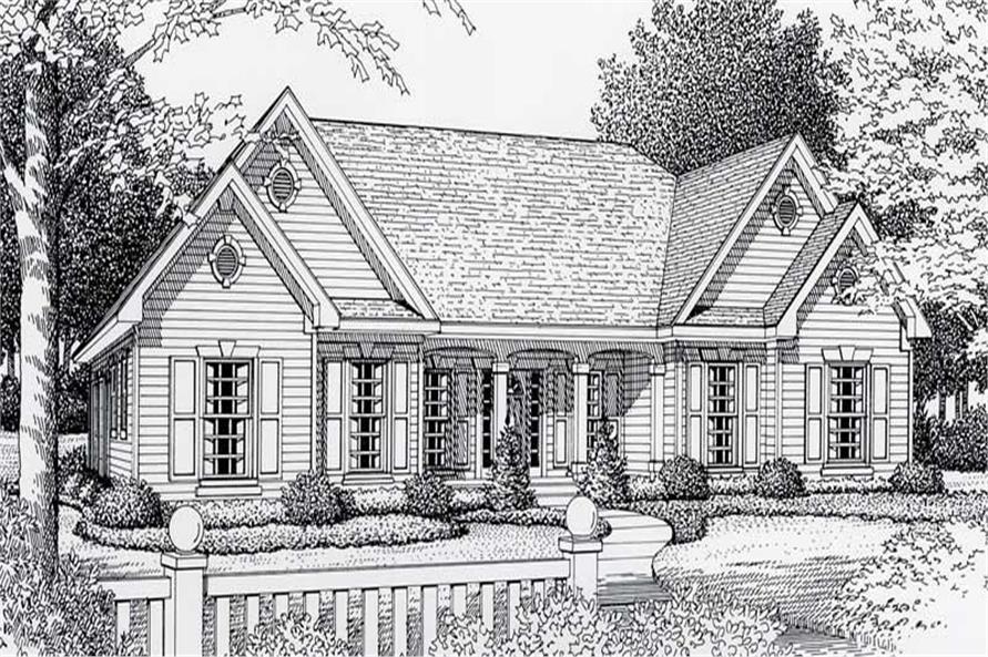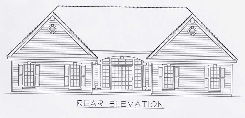 House Plan RDI-1809R1-B is a symmetrical design centered on the great room. To the left is the kitchen and dining area boasting a large island in the kitchen, tray ceiling in the dining, and a large pantry. The great room itself enjoys a 10 foot ceiling and archways. To the right are the bedrooms, each with either vaulted or tray ceilings. The master suite features a fireplace, large walk-in closet, and a private bath with room for a spa tub.