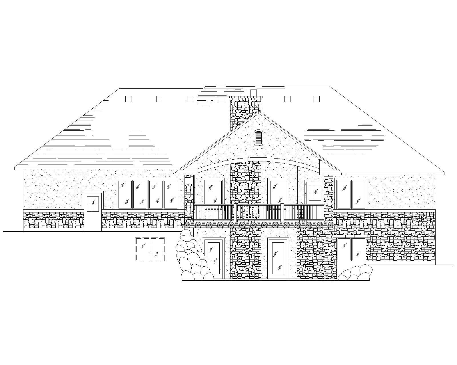 R1821 is a Traditional house featuring a large master suite that has the walk-in closet and bathroom wrapping around the bedroom. This plan has a daylight basement with a wet bar on the side of the game room and two bedrooms sharing a bathroom.