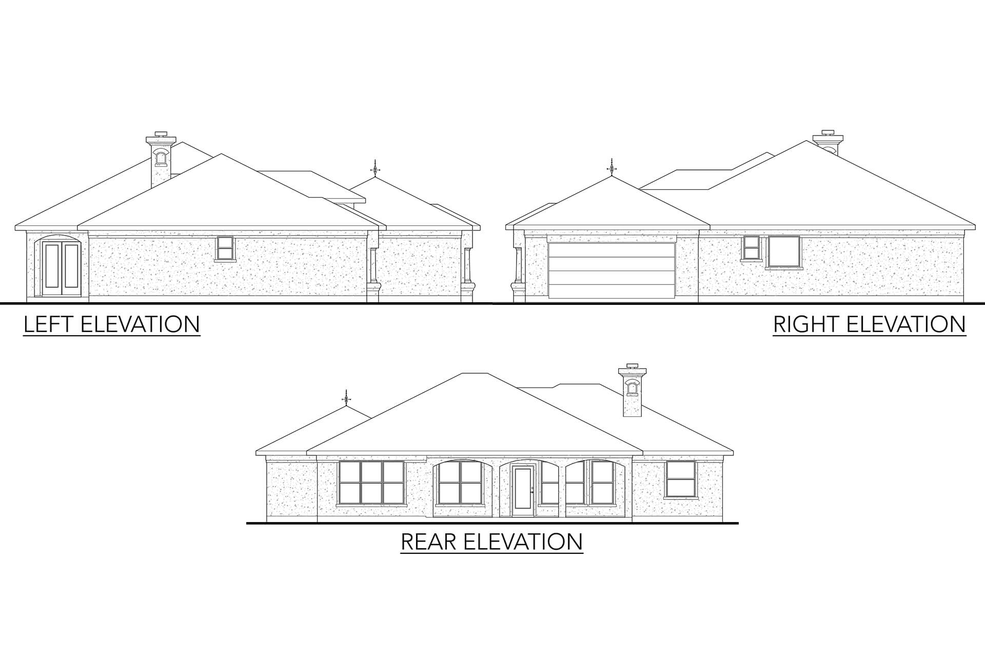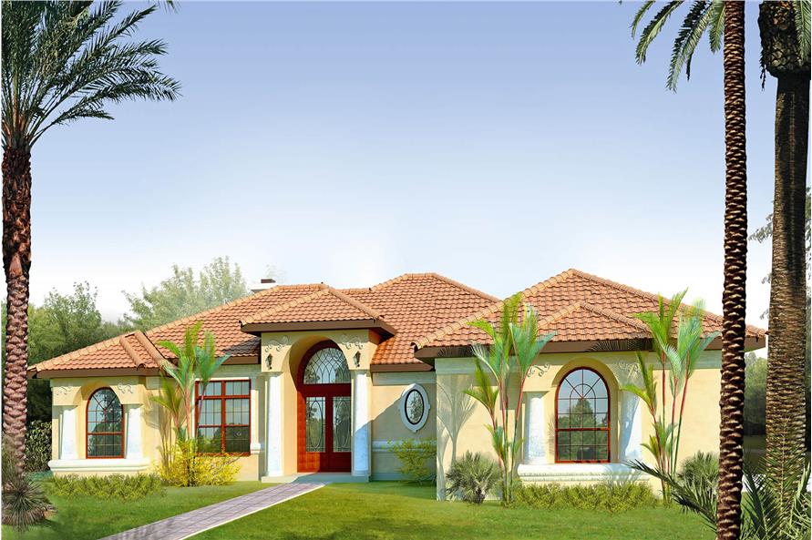 Clay or concrete roofing tile and stucco exterior give this home a distinctive Mediterranean look. A grand entry with a barrel ceiling in the foyer becomes the focal point of the elevation. A large covered back porch can be accessed from the great room and from the master suite. Many columns, arches, and art niches add unique architectural details to this home plan.