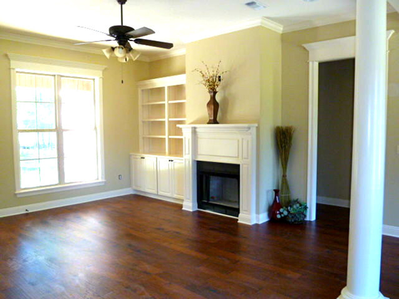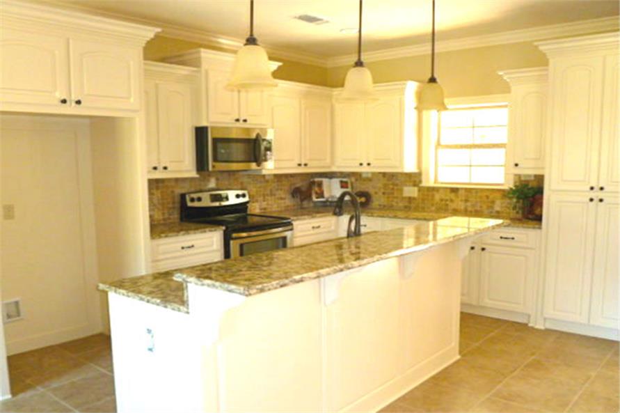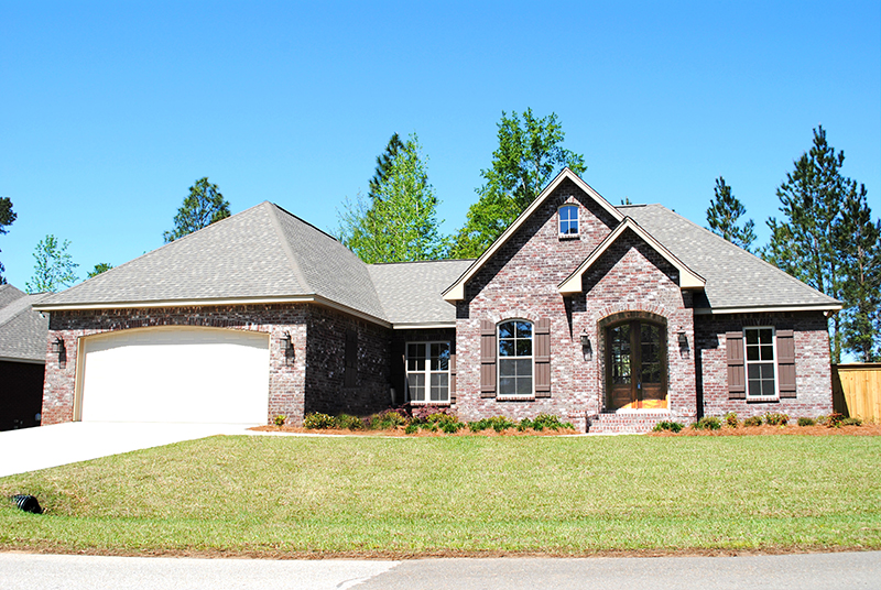 This attractive Acadian style home (House Plan # 142-1086) has over 1850 square feet of living space. The one-story floor plan includes 3 bedrooms and 2 bathrooms. The exterior of this brick home has a graceful covered rear porch. Inside, this house design's floor plan includes a welcoming main floor master bedroom suite. The total square footage of this home is 2669 (not including the masonry).