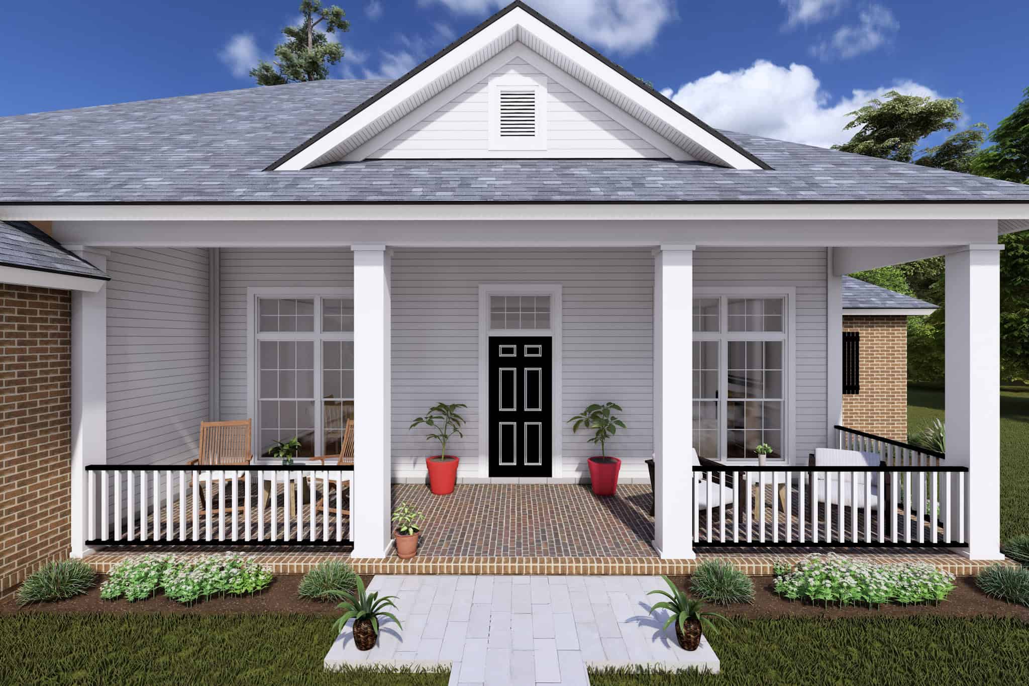 The large front porch of this lovely Country-style house plan invites you inside. Step inside, and you are immediately in the elegant great room of the home plan. The great room can be split into dining and living areas, and it features wonderful 11-foot-high ceilings and gives you access to the rest of the home. The open floor plan allows the great room to flow into the kitchen and breakfast nook, which opens to the large rear porch. The kitchen features a practical L-shape design with a peninsula that has a built-in eating bar.