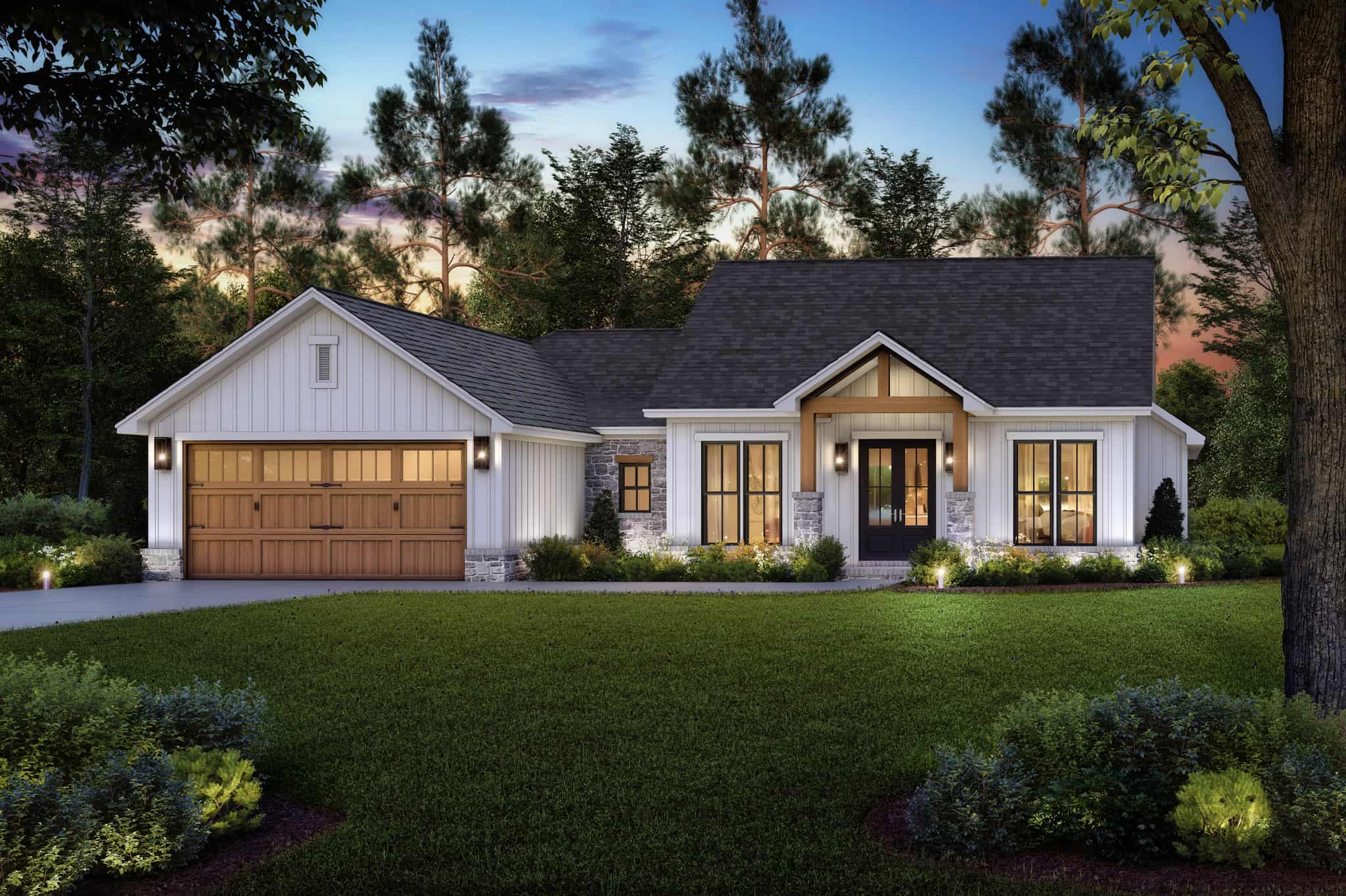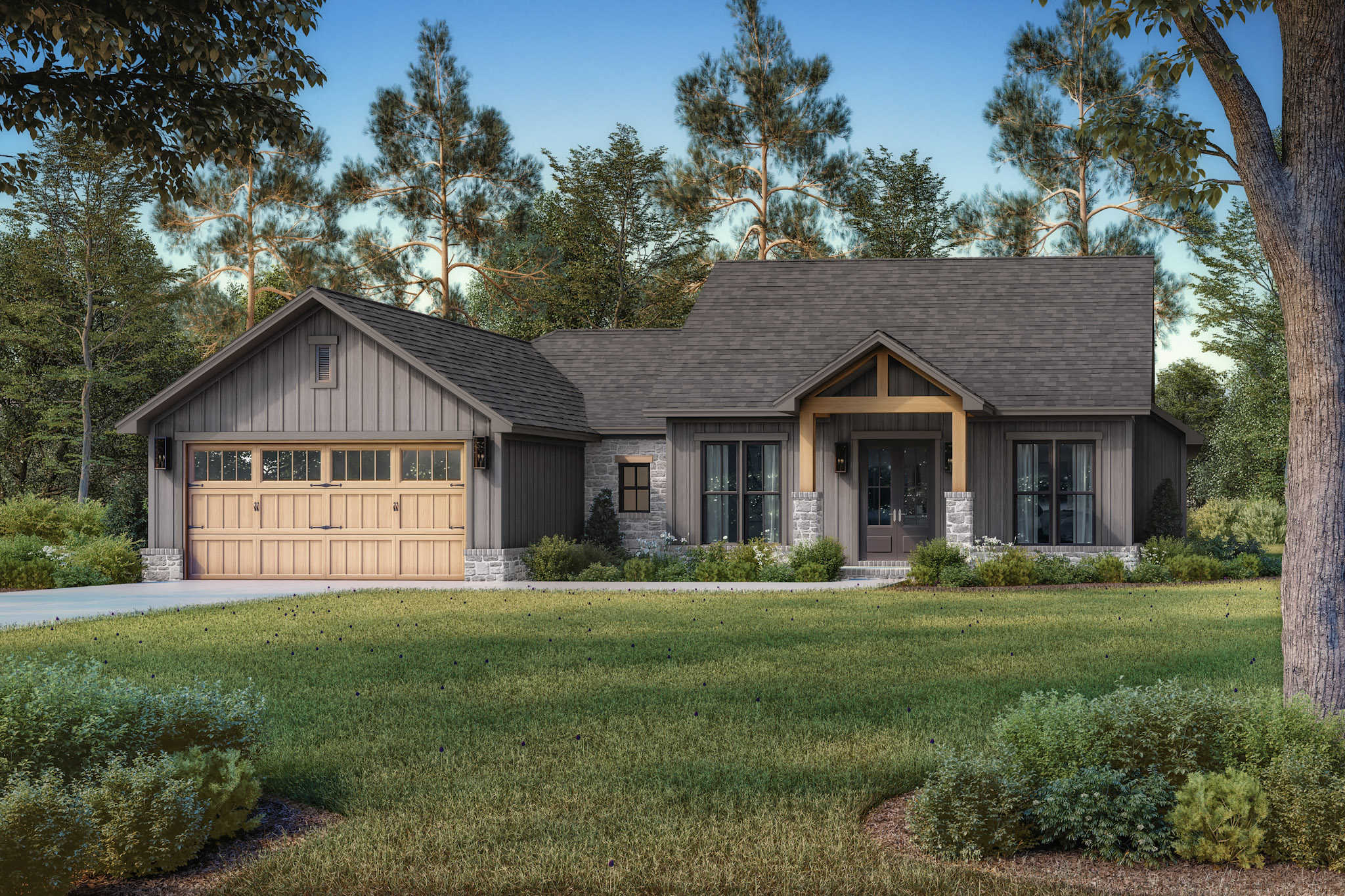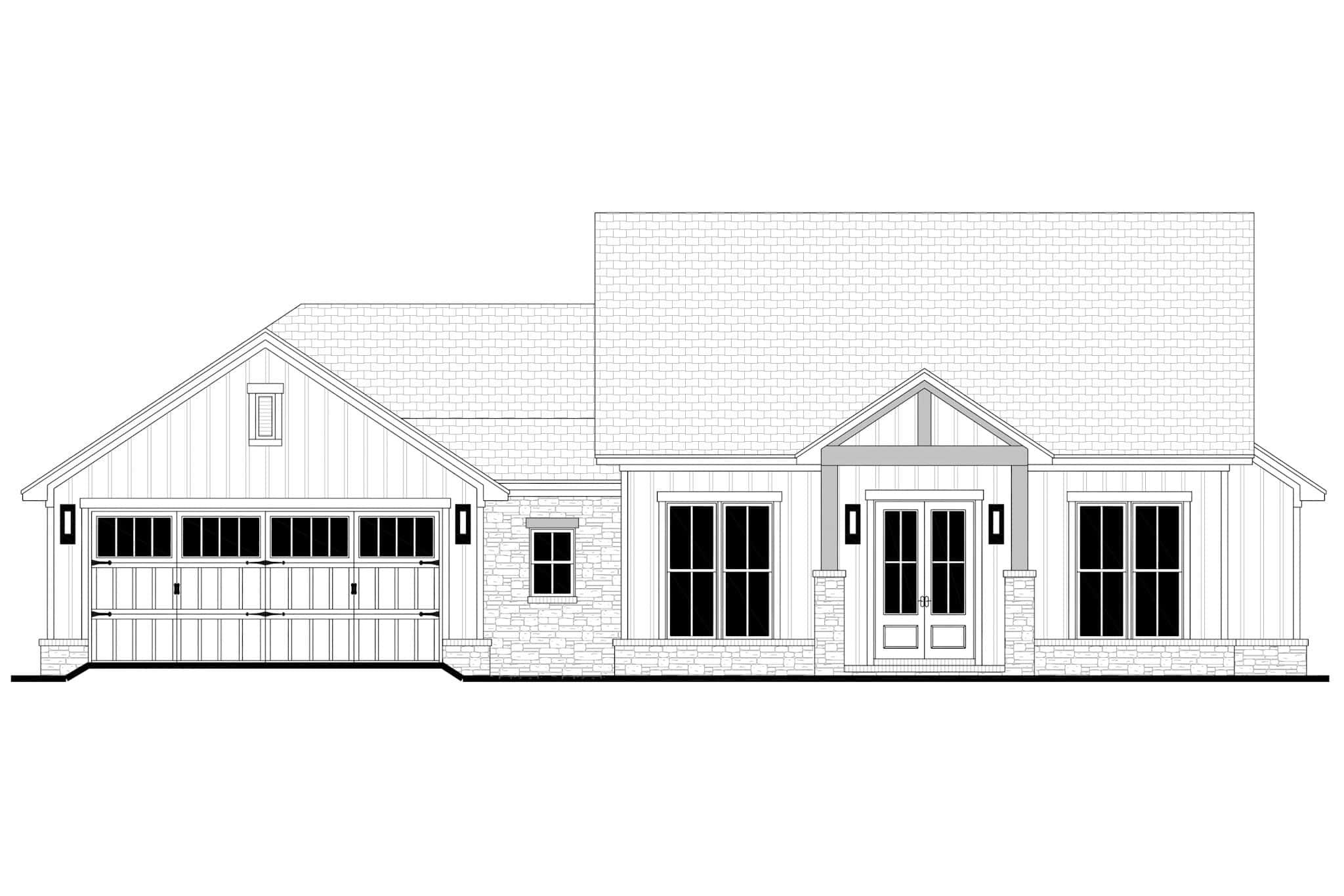 This atractive country ranch maximizes space with 4 bedrooms and 2.5 baths under 2,000 sq. ft. Its vaulted entry porch opens to a spacious great room, kitchen, and dining area. The split floor plan offers a private main suite with a luxurious bathroom and oversized walk-in closet.