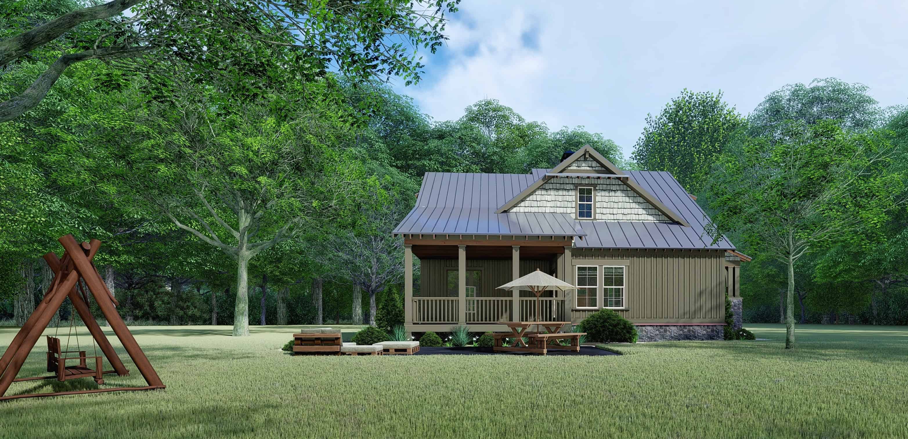 This stunning cottage style home has a floor plan that is spacious and inviting. It showcases a covered wrap-around front porch to enjoy the sun and the surrounding landscape. The porch sports an attractive standing-seam metal roof. The 1.5-story floor plan has 1905 square feet of living space and includes 3 bedrooms.
