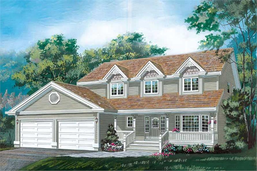 A covered railed veranda and decorative woodwork adorn this family home. Dormer windows brighten the vaulted foyer, which opens on the right to the formal living areas. The centralized kitchen holds a cooking island and bayed breakfast nook.