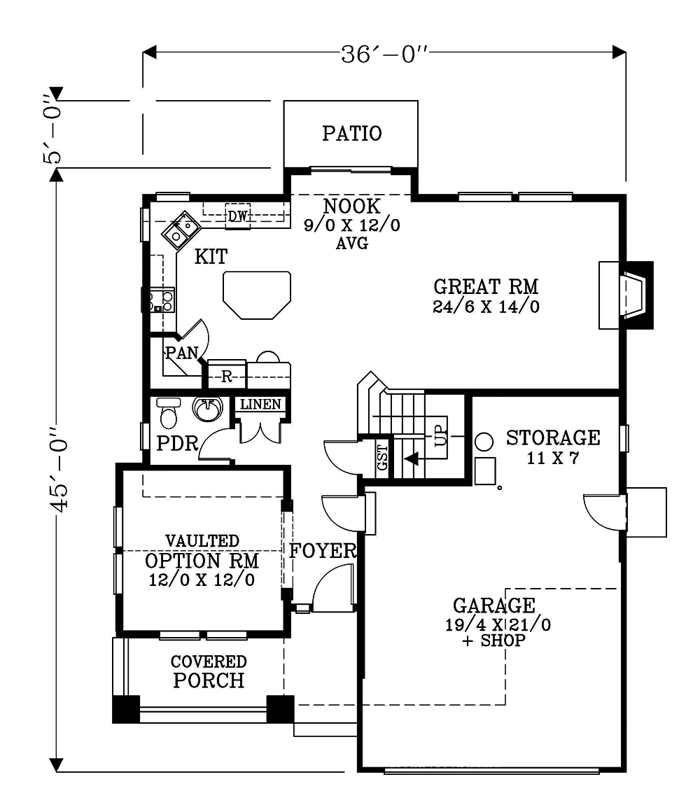 1-Bedroom, 915 Sq Ft Ranch Home Plan - 141-1327 - Main Exterior