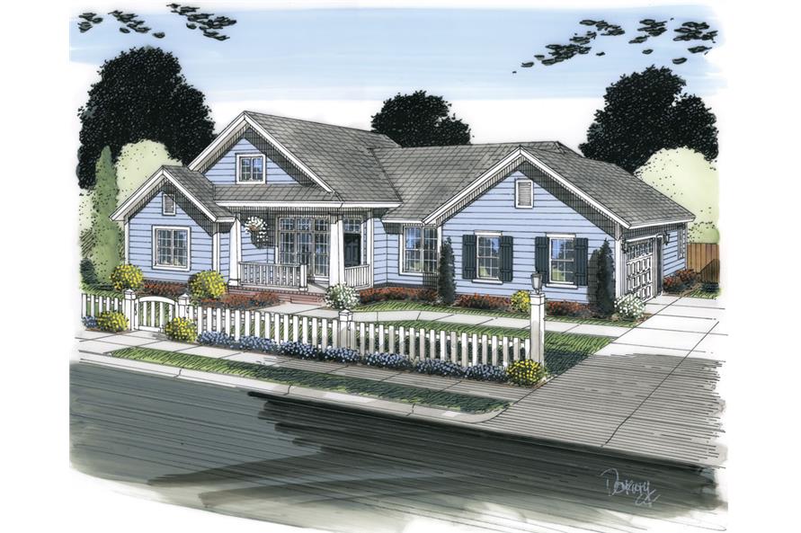 Enter this beautiful Ranch-style home plan from the front porch. As soon as you step into the house plan, you immediately feel at home and are right in the heart of the home's floor plan. The main living area has exquisite 11-foot-high ceilings. The living room is spacious and features a built-in fireplace. The open concept of the floor plan allows the living room, kitchen, dining room, and breakfast nook to all seamlessly flow together. The kitchen features a great L-shape design with an oversize island. The island has a built-in eating bar that reaches into...