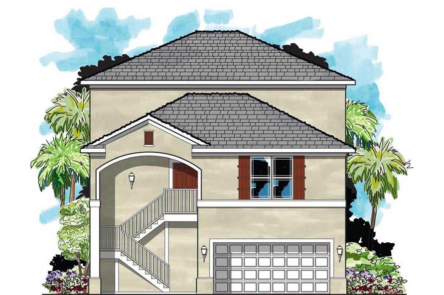 This is the front elevation for these Mediterranean Home Plans.