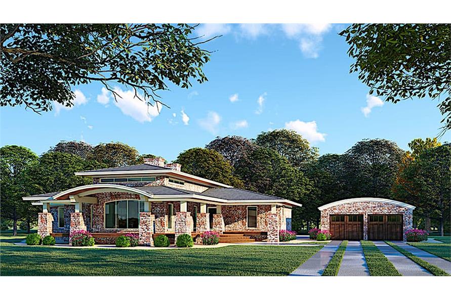 This lovely Contemporary style home with Prairie influences (Plan #193-1123) has 2005 square feet of living space. The 1 story floor plan includes 4 bedrooms.