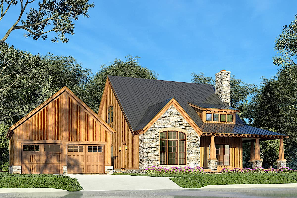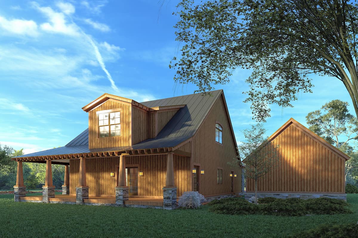 You'll fall in love with every detail that this Rustic Cabin style home with wrap-around porch has to offer. The exterior and interior of the house exudes a very cool and homey ambiance that's just perfect for rural surroundings, and the two-story Great Room with vaulted ceiling is just magnificent. You'll also love relaxing on the covered wrap-around porch. The 1.5-story house covers a heated and cooled area of 2006 square feet on the main- and upper-level areas. The optional 2-car detached garage comes with the house at no...