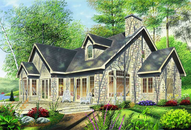 Some key features of this plan are a master suite, kitchen island, foyer, laundry area, fireplace, and snack-bar in kitchen. Other features include deck/patio, special ceiling treatments, and mezzanine.