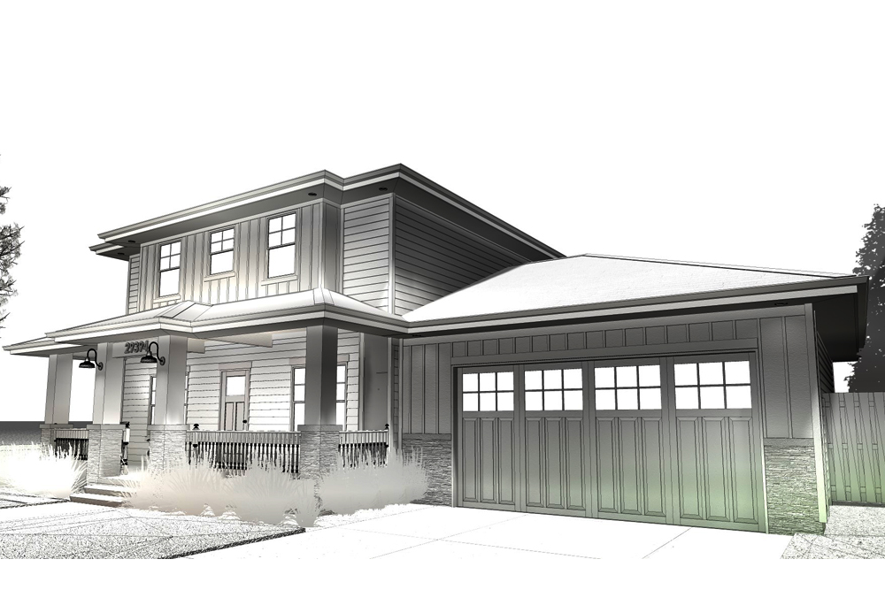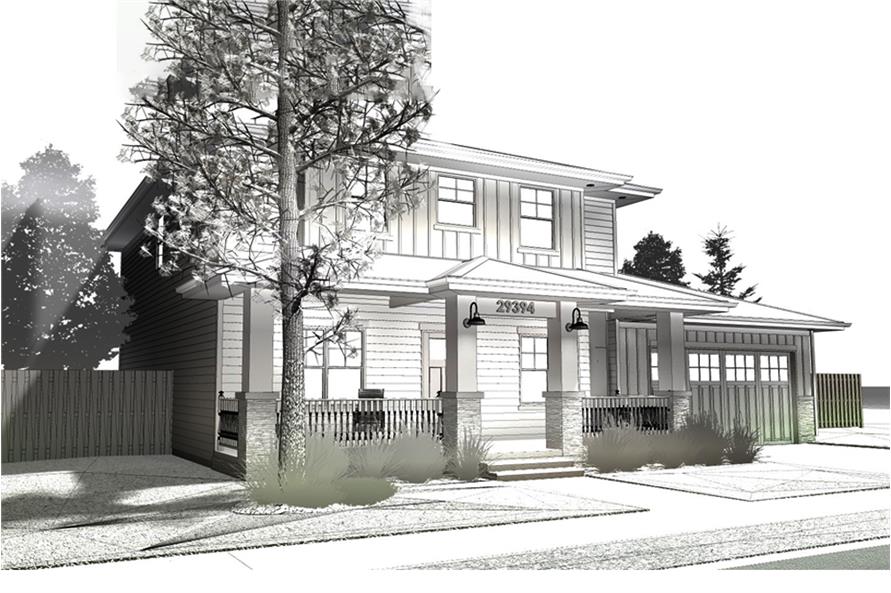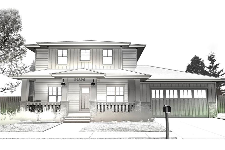 This lovely Prairie style home with Craftsman influences (House Plan #100-1229) has 2022 square feet of living space. The 2 story floor plan includes 3 bedrooms.