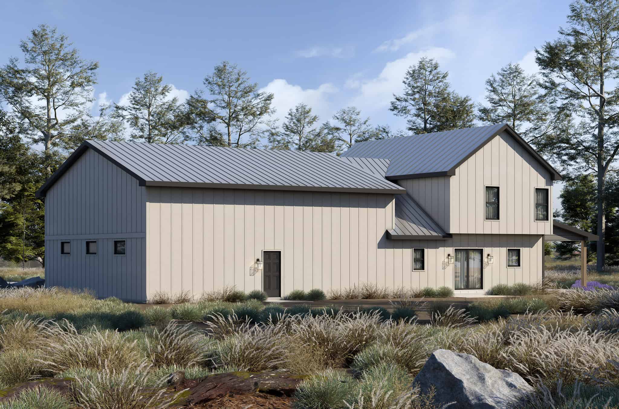Brimming with allure from its enduring details, this Barndominium style abode encompasses 2,042 square feet and features 3 bedrooms, 2.5 baths, and a 3-car garage. Moreover, it presents a delightful fusion of elements, signifying sophistication in every aspect: