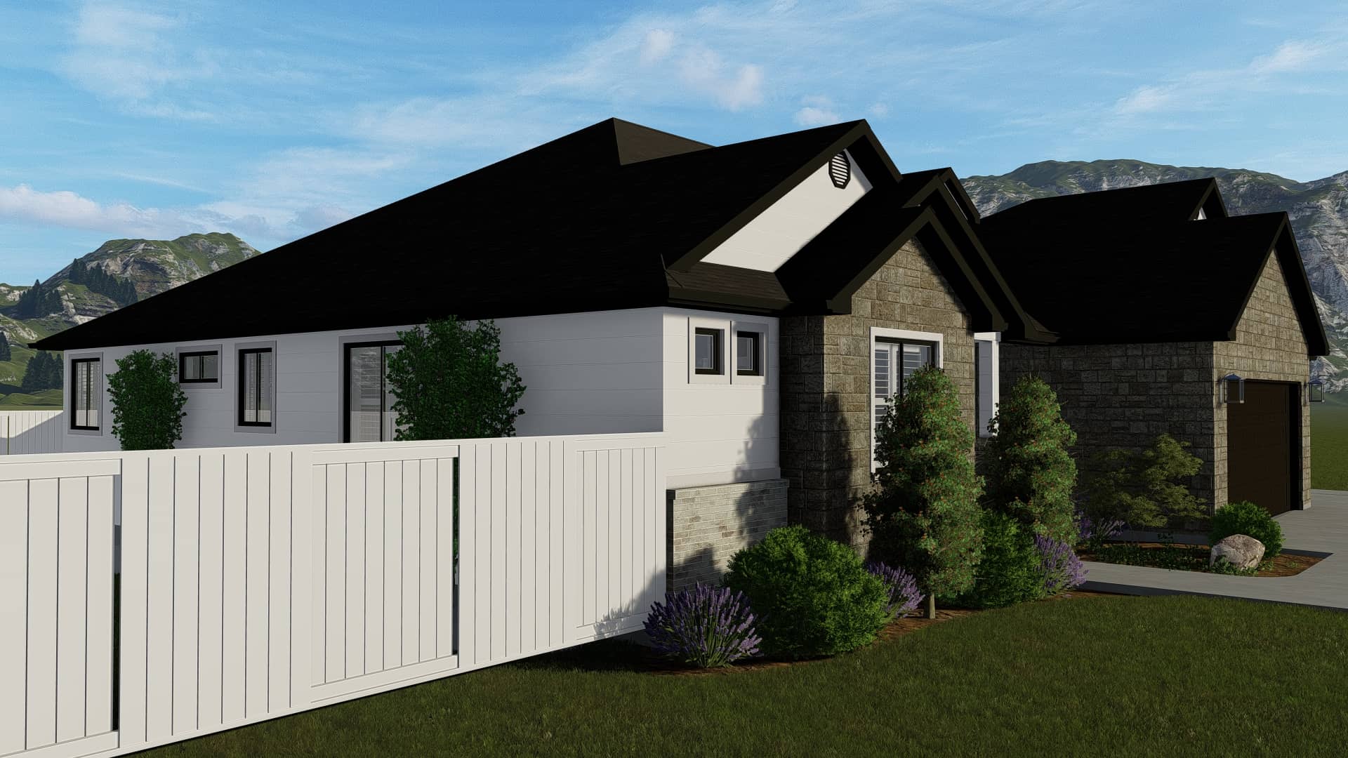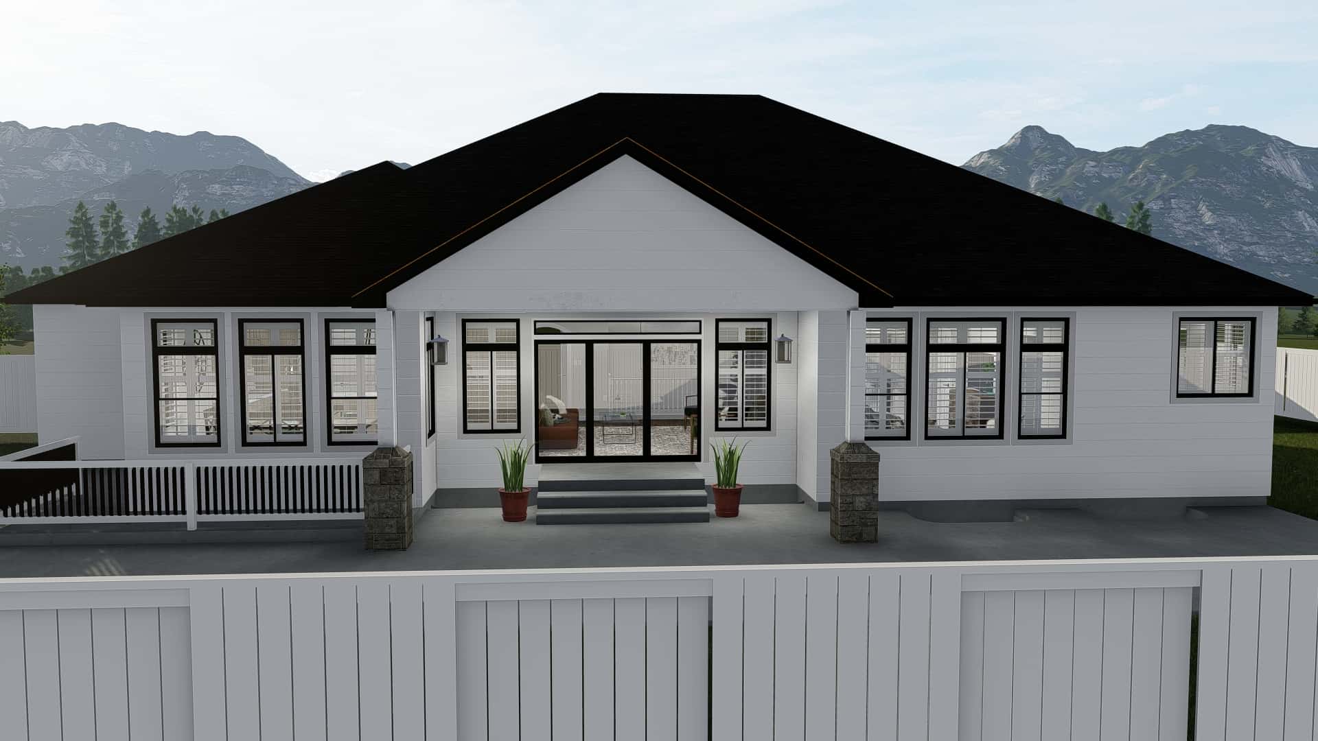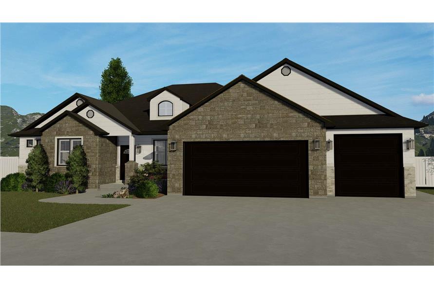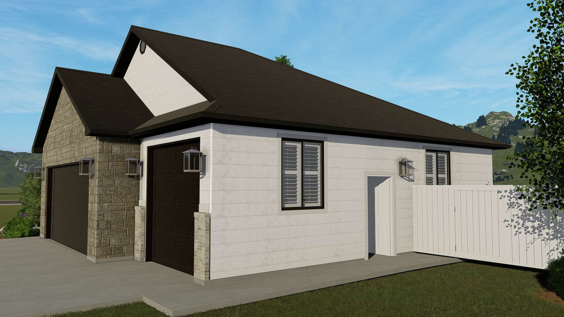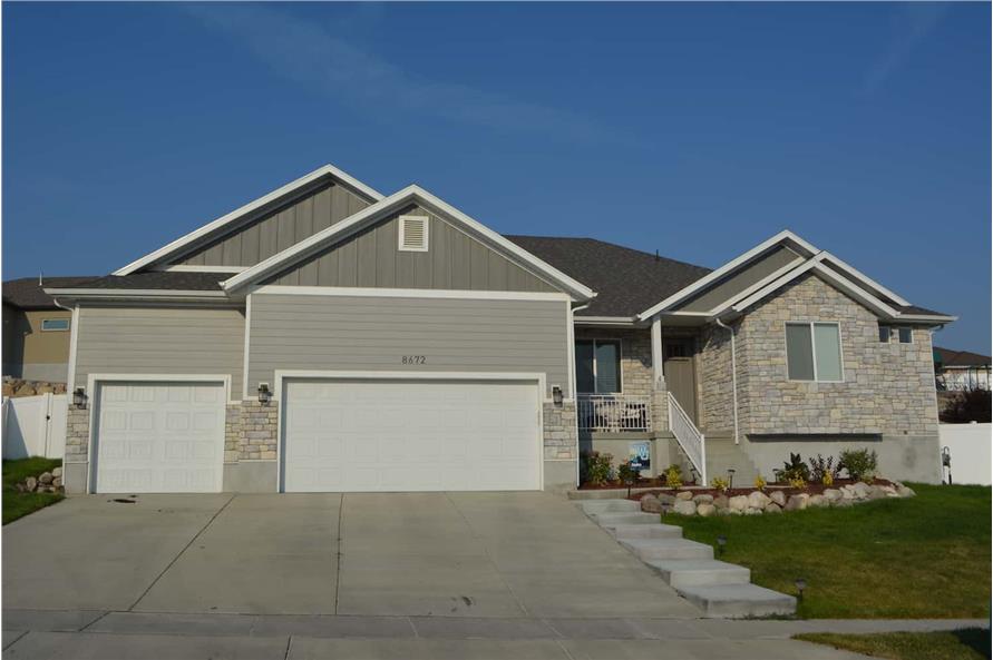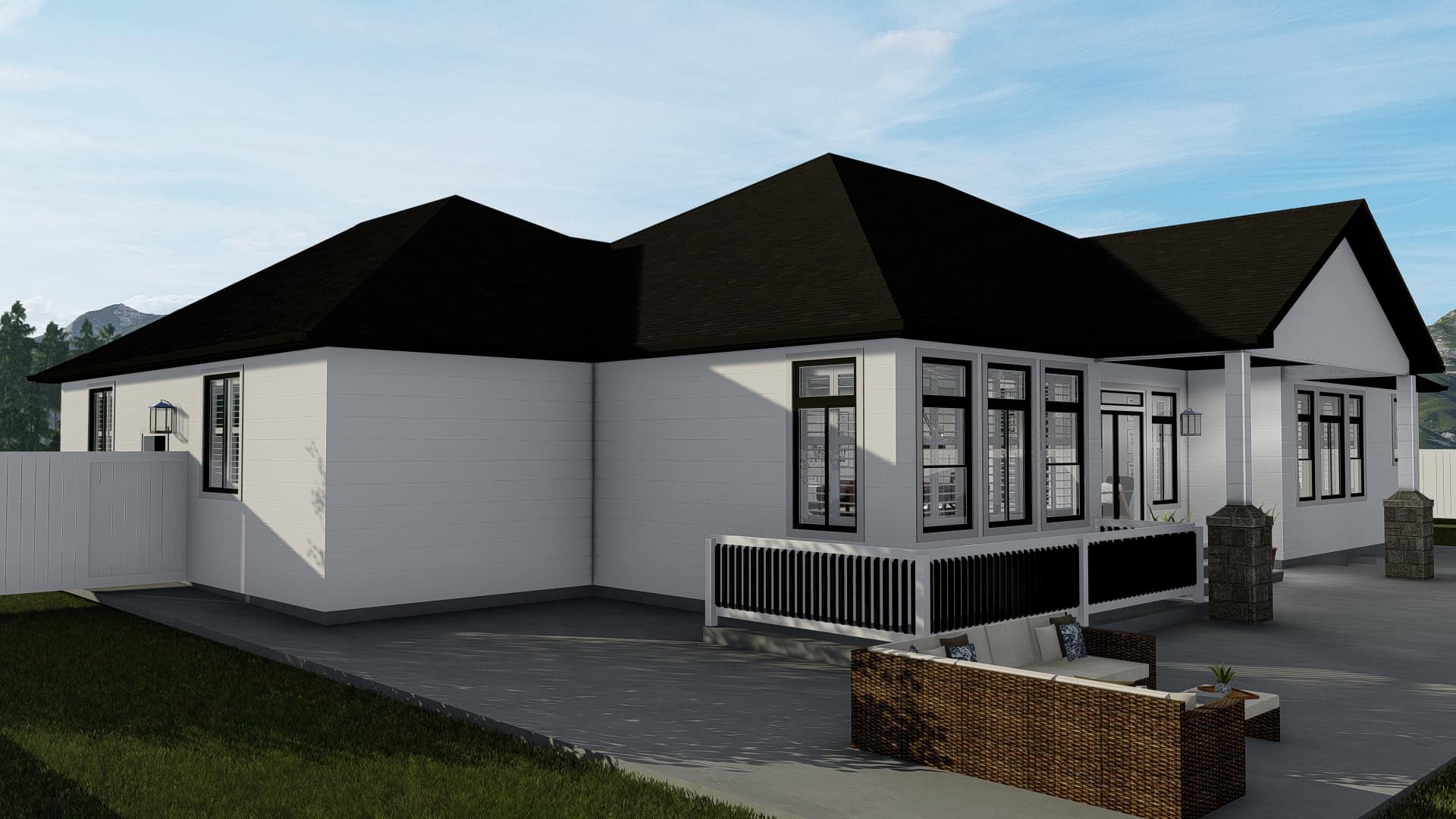 This country ranch boasts a flexible and dynamic house design well-suited for an average-size lot, with a front-load garage and an open concept floor plan. The house covers a total finished area of 2050 square feet on the main level plus an additional 2106 square feet if the optional finished space in the daylight basement is completed.