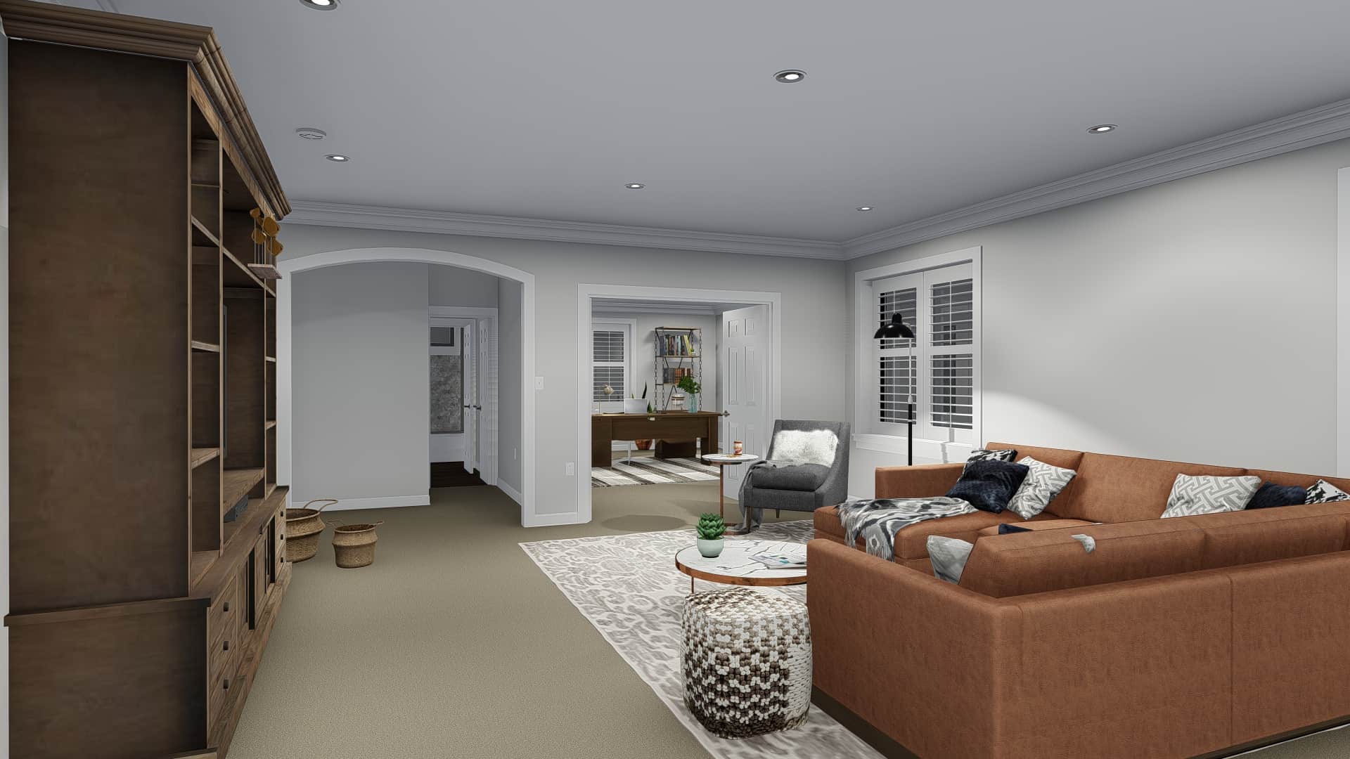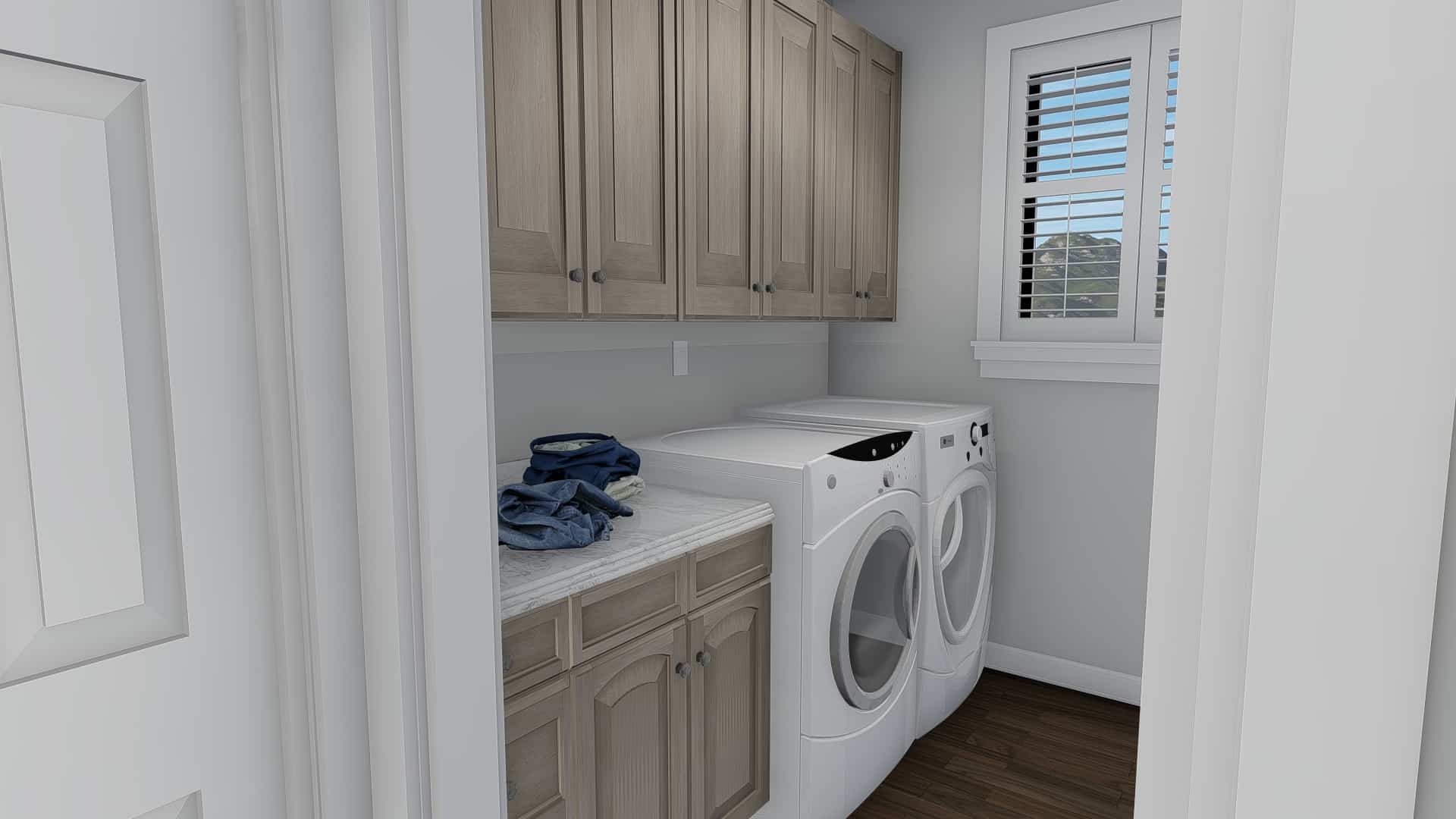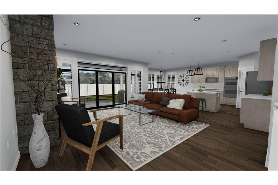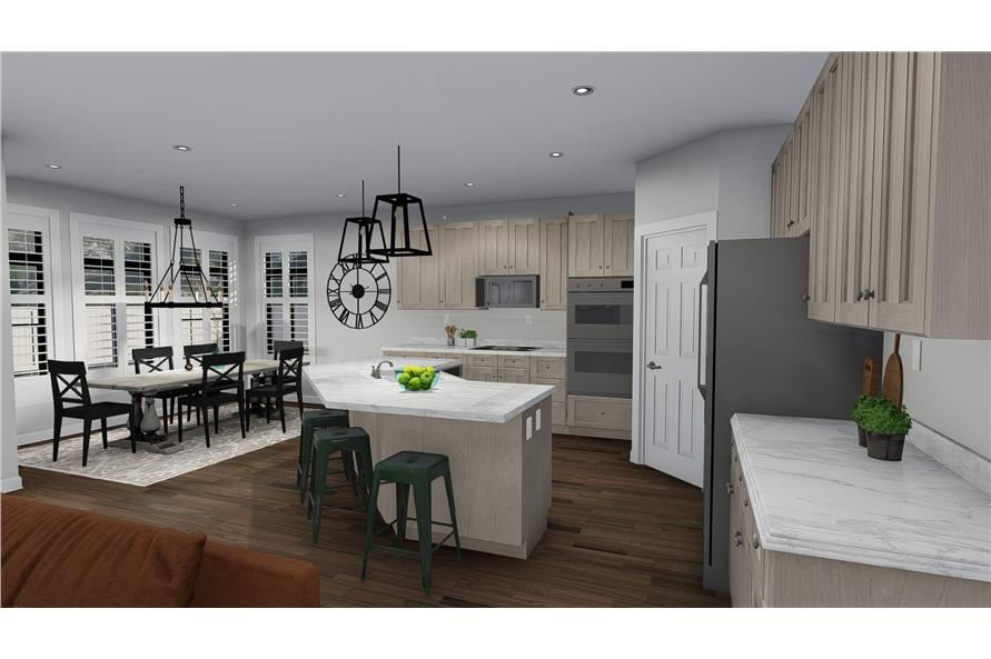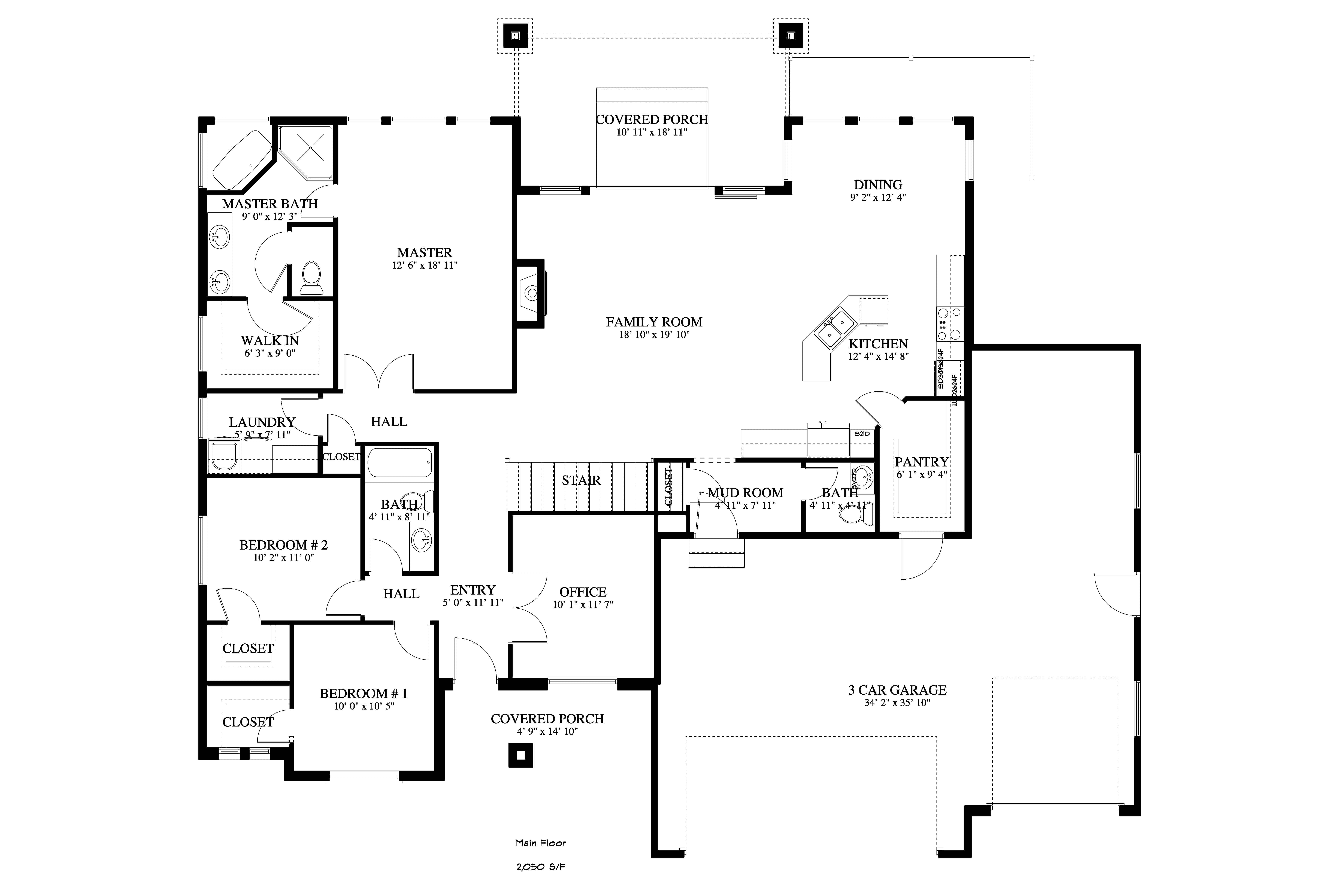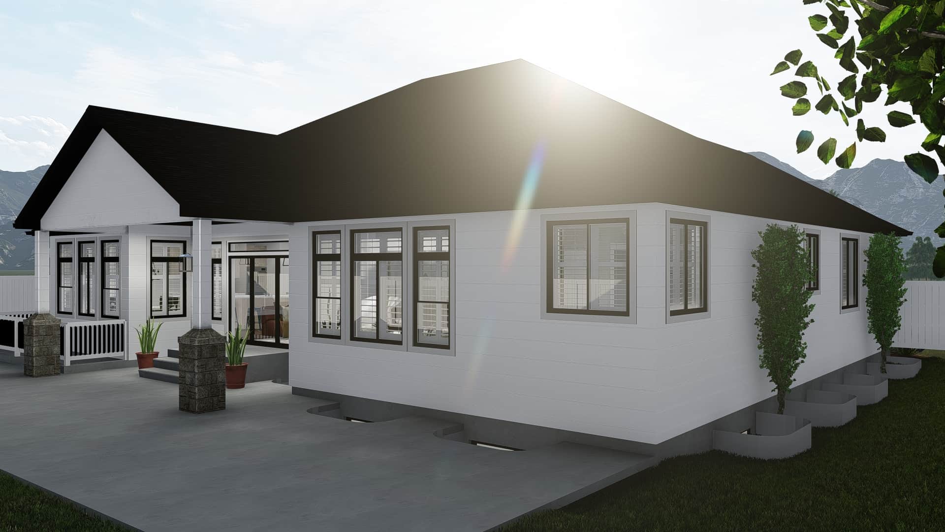 This country ranch boasts a flexible and dynamic house design well-suited for an average-size lot, with a front-load garage and an open concept floor plan. The house covers a total finished area of 2050 square feet on the main level plus an additional 2106 square feet if the optional finished space in the daylight basement is completed.