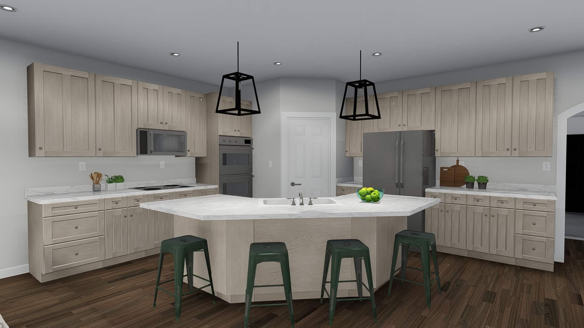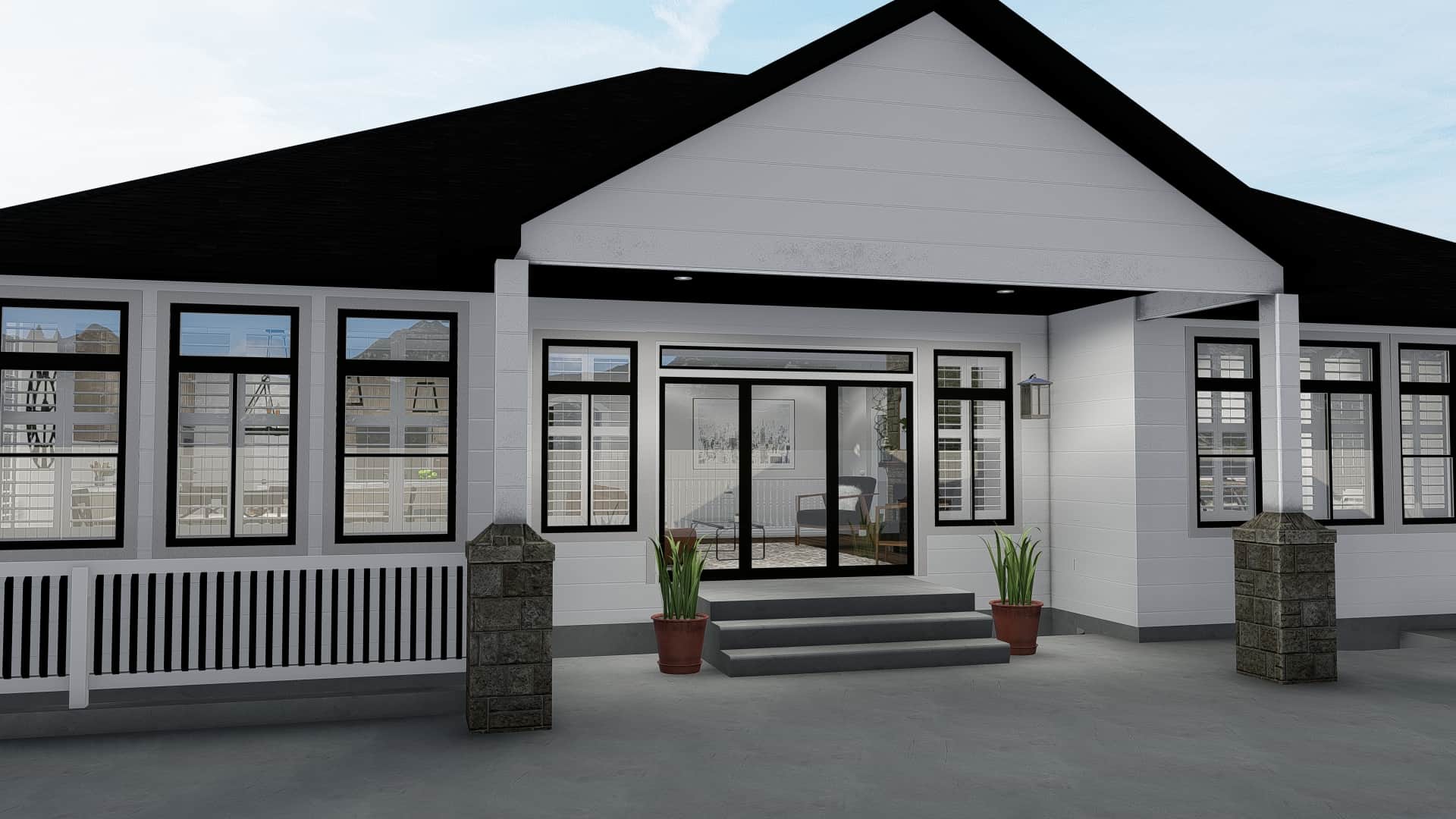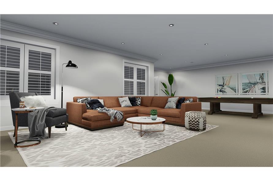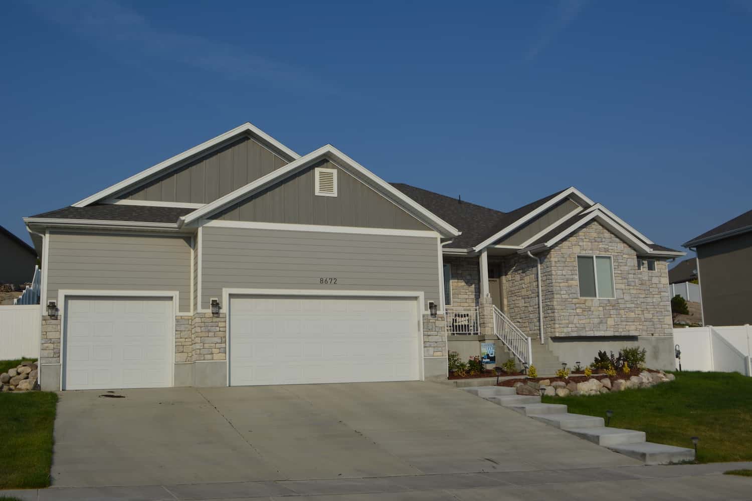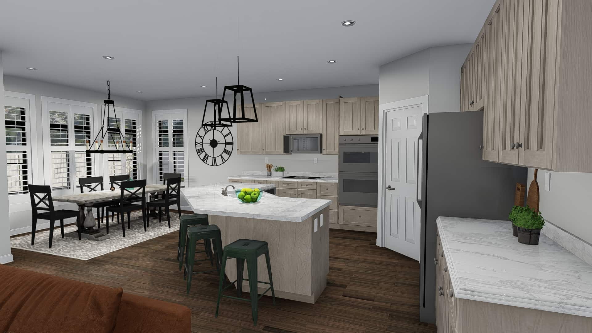 This country ranch boasts a flexible and dynamic house design well-suited for an average-size lot, with a front-load garage and an open concept floor plan. The house covers a total finished area of 2050 square feet on the main level plus an additional 2106 square feet if the optional finished space in the daylight basement is completed.