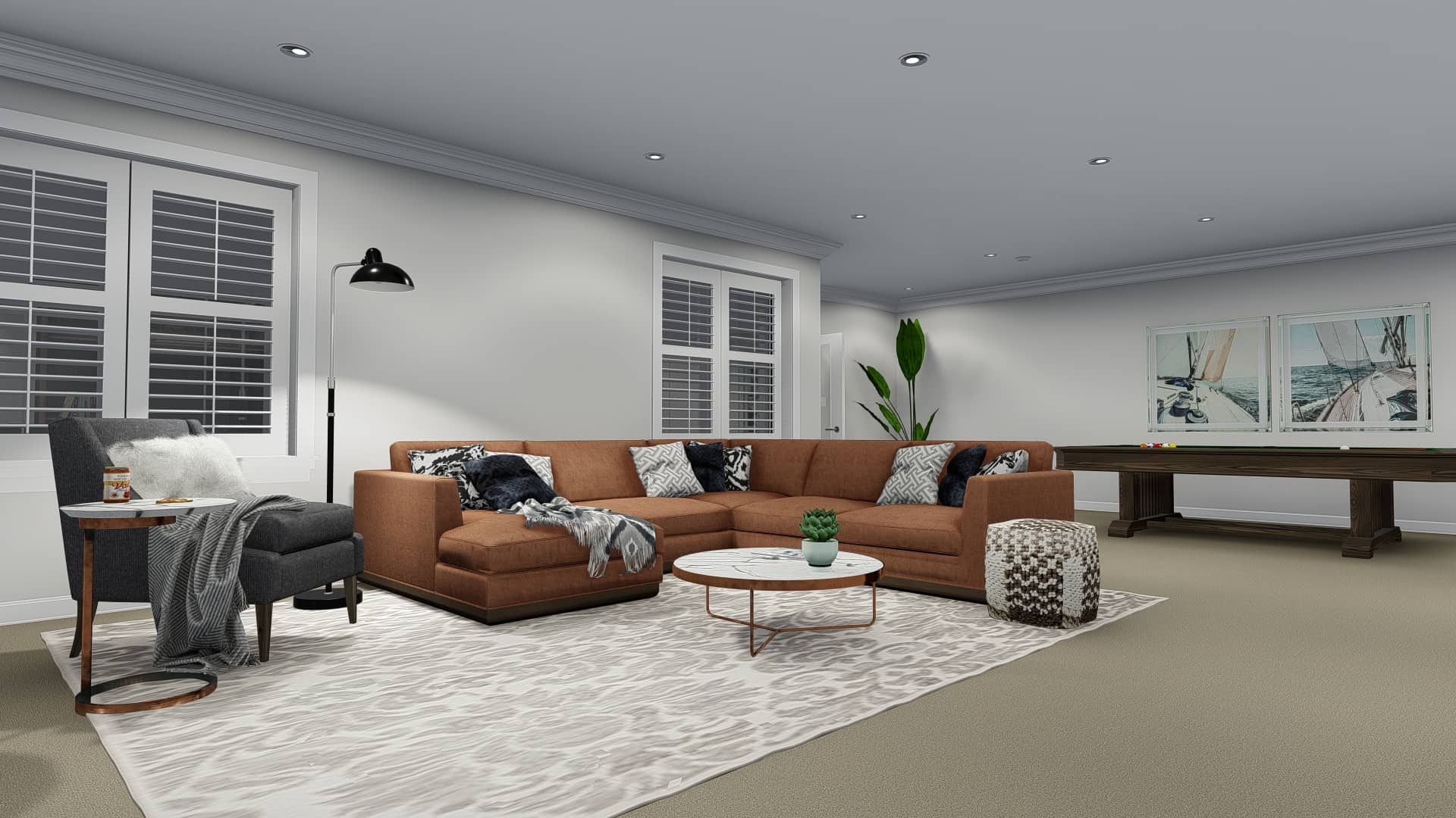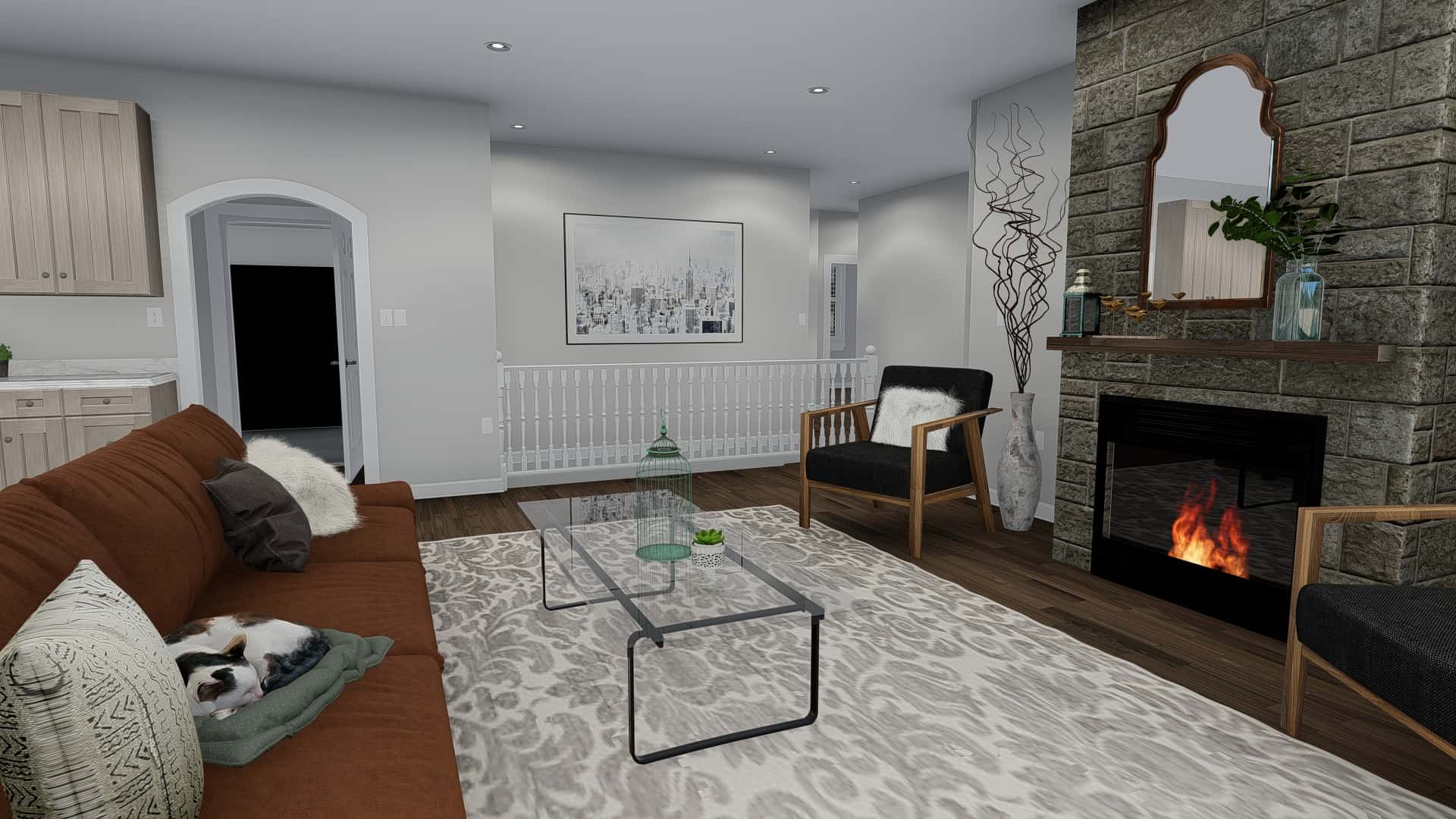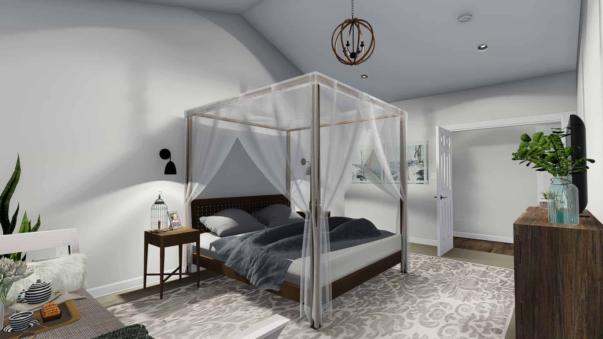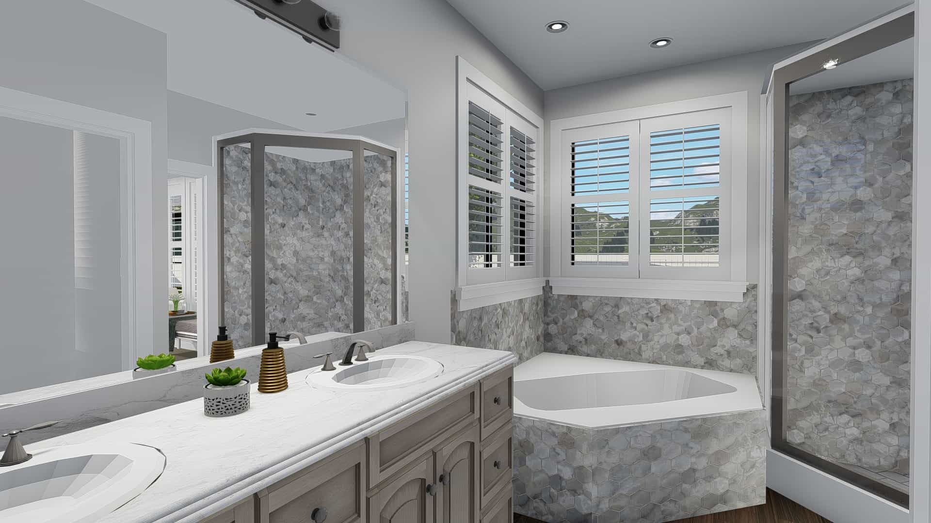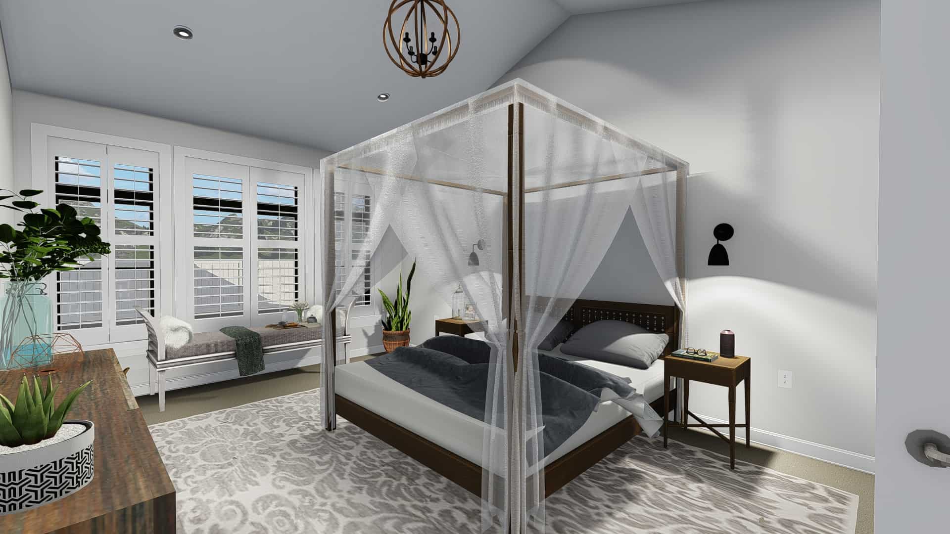 This country ranch boasts a flexible and dynamic house design well-suited for an average-size lot, with a front-load garage and an open concept floor plan. The house covers a total finished area of 2050 square feet on the main level plus an additional 2106 square feet if the optional finished space in the daylight basement is completed.