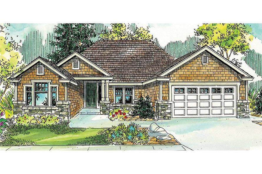 Craftsman Home Plans - A vaulted, window-rich gathering space is at the heart of this Craftsman cottage with a fully contemporary interior. The gas fireplace nestled into a rear corner of this expansive space can also be enjoyed by people working in the kitchen. A tray ceiling and luxurious bathroom give a touch of class to the owners suite.
