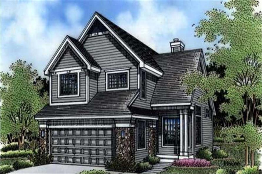 The easy style of this two-story home makes it reminiscent of yesterday's country homes. Inside, the living and dining rooms share a dramatic vaulted ceiling. The gourmet kitchen features an island workstation and a built-in desk.