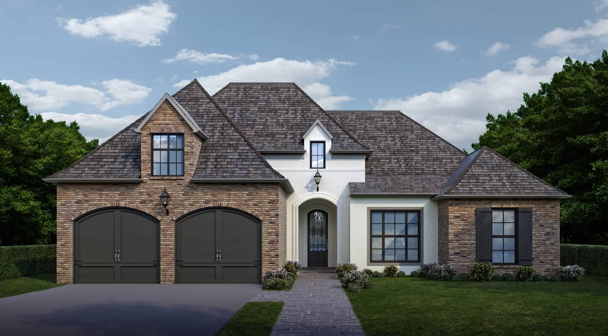 This superb Transitional Ranch style home is sure to capture your attention with its classy design and looks. The steep hip roof with gable dormers, large multi-pane windows, graceful arches above the doors, and painted brick give the house its irresistible curb appeal. The splendid 1-story floor plan has 2073 square feet of conditioned living space and includes 4 bedrooms, 2 full bathrooms (one a split bathroom to serve 3 secondary bedrooms), an expansive open floor plan, and a home office.