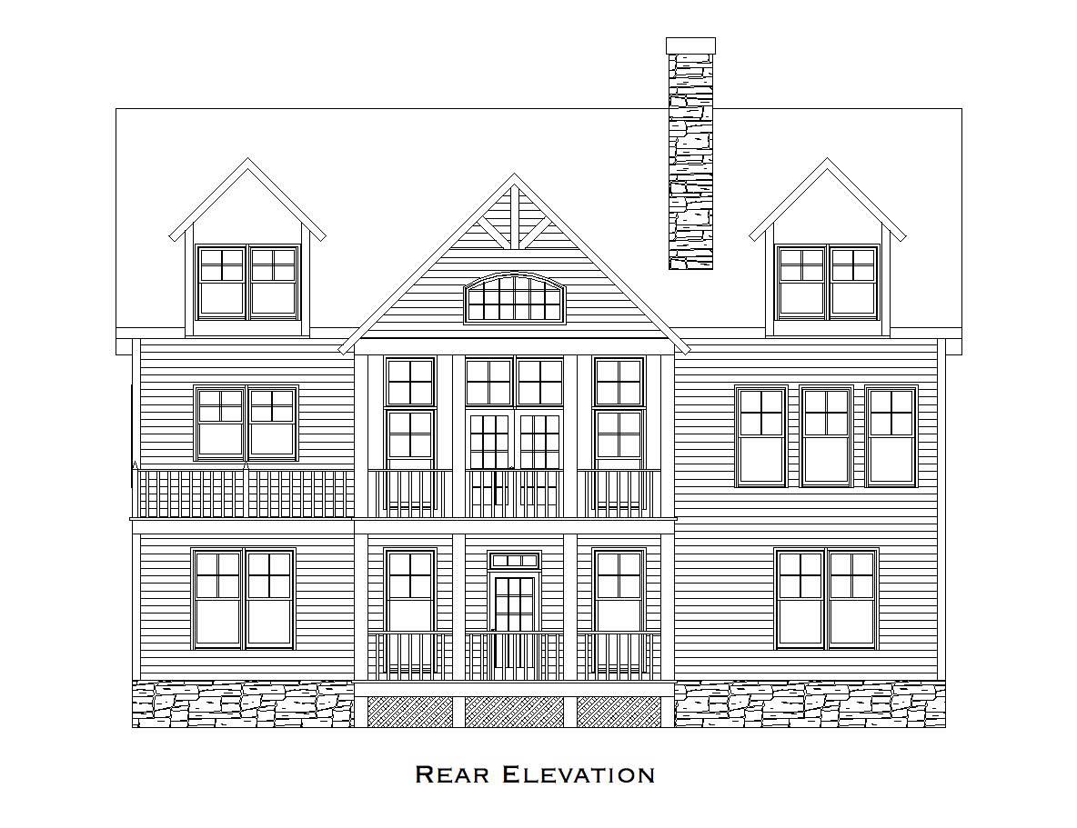 This popular plan offers a great combination of size (2079 sq.ft.) and expandability. There is a generous size bedroom suite on the main level and 2 bedrooms with adjoining baths upstairs. The two-story, vaulted great room has a fireplace, built-ins and is open to the dining room. The terrace level / basement has daylight and offers future expandability with optional 2 bedrooms and 2 baths with a rec room. This mountain home offers the comforts of a lodge, but in a manageable size.