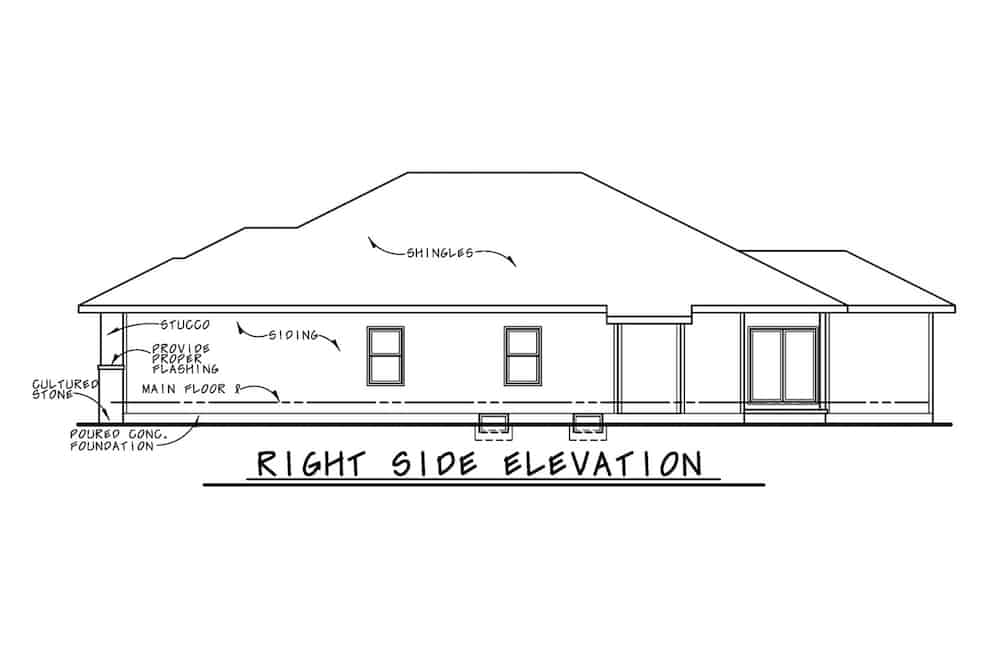 The lovely portico with arched opening creates an inviting entry to this adorable California Style Ranch home. The stepped hip roof and stucco-and-stone exterior give the house design a very interesting curb appeal. The delightful home's 1-story floor plan has 2080 square feet of heated and cooled finished living space and includes these special amenities: