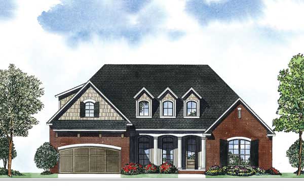 This charming European style home with Ranch influences (House Plan #153-1116) has 2083 square feet of living space. The 2-story floor plan includes 4 bedrooms.