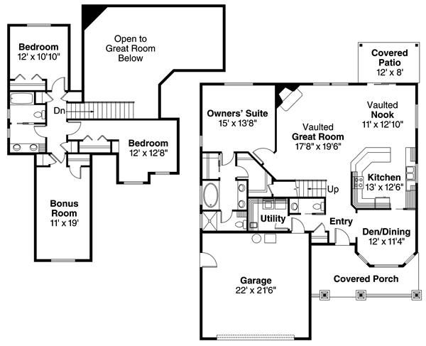Charming 3-bedroom, 2,091 sq ft country home featuring a main-floor owner’s suite, vaulted great room and nook, secondary kitchen, kitchen peninsula, den/dining room, covered porch, bonus room, and a spacious 2-car garage.