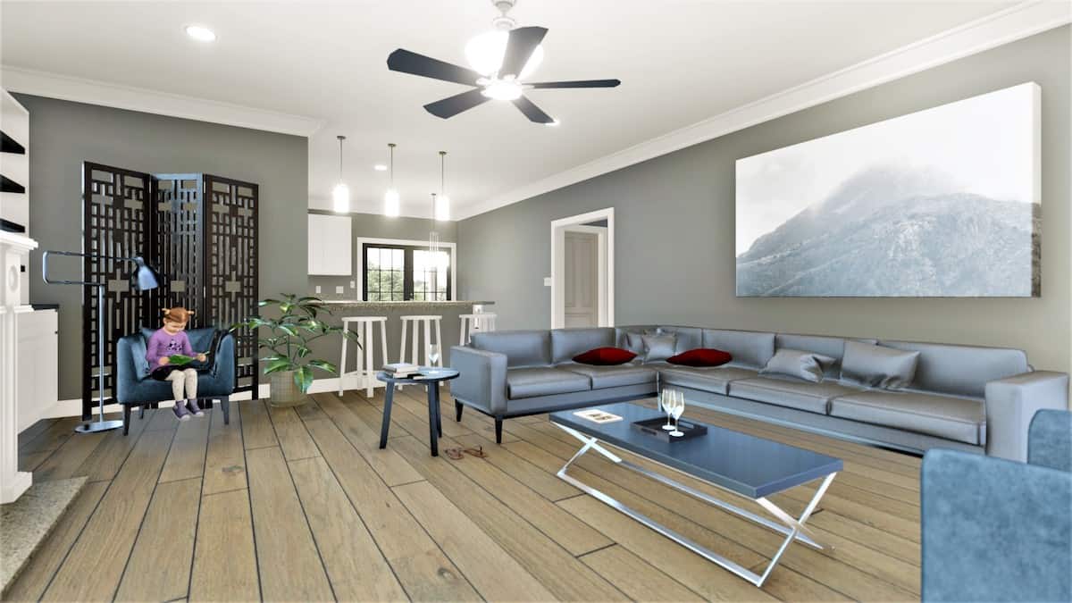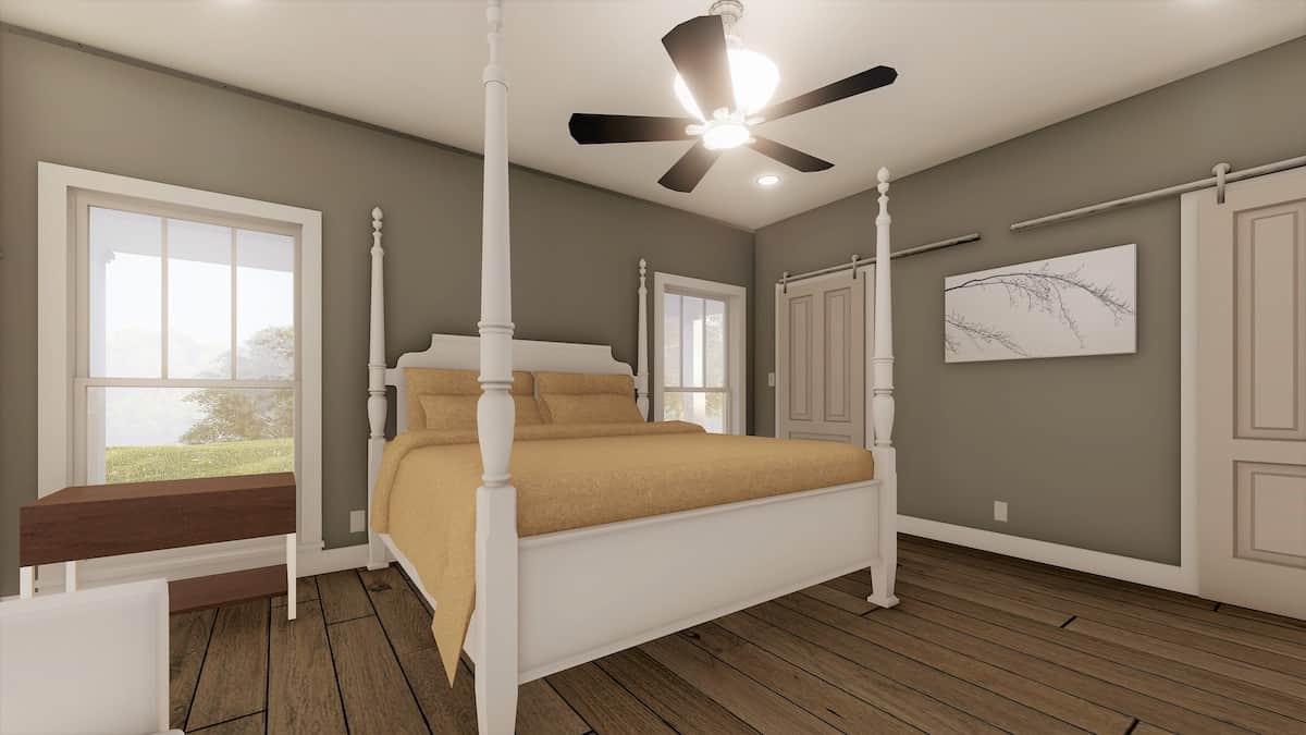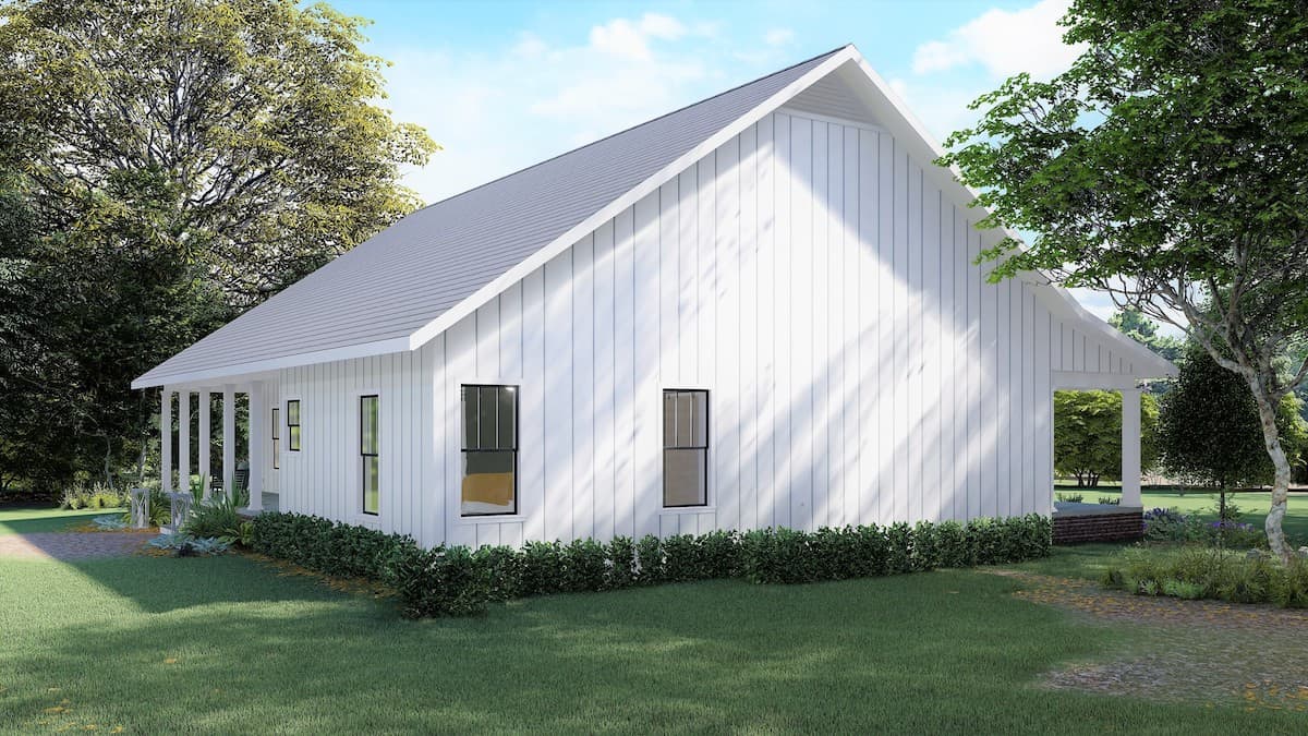 You'll enjoy coming home to this wonderful Modern Farmhouse style Ranch – simple but elegant – which has 2096 square feet total heated and cooled area that maximizes every available square foot of space. The full-width covered front porch, sturdy white columns, and white vertical siding give it great curb appeal.