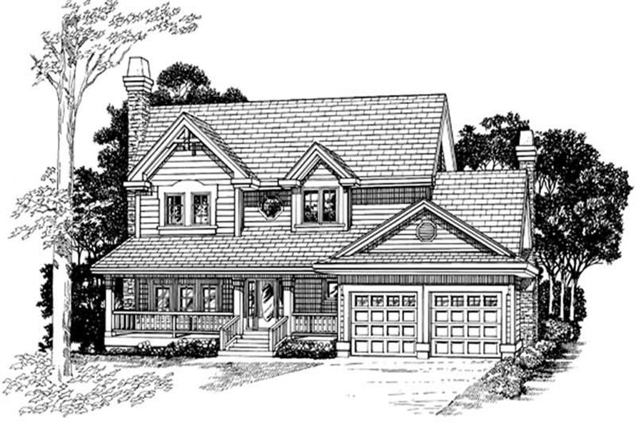 This set of House Plans has a lovely covered front porch and two fireplaces. One of these is located in the family room, the other in the living room.