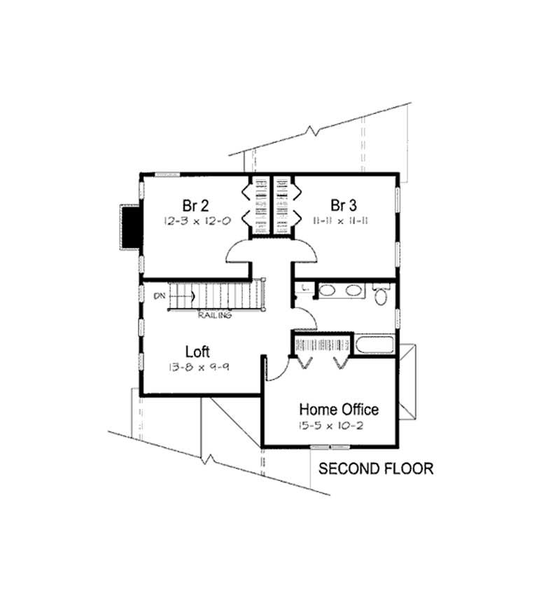 Ornate columns accent the entry of this elegant home. The narrow width of this design allows it to be built on a narrow lot. The dining room is topped by a decorative ceiling treatment and has a built-in area for a china cabinet. The master suite includes a private bath and a walk-in closet. The kitchen and Great room are to the rear in an open and airy format. A snack bar/cooktop island adds convenience to the kitchen, while a fireplace in the Great room gives a cozy warmth to the entire living space. There are two additional bedrooms, a home office, loft area and a full bath on the second...