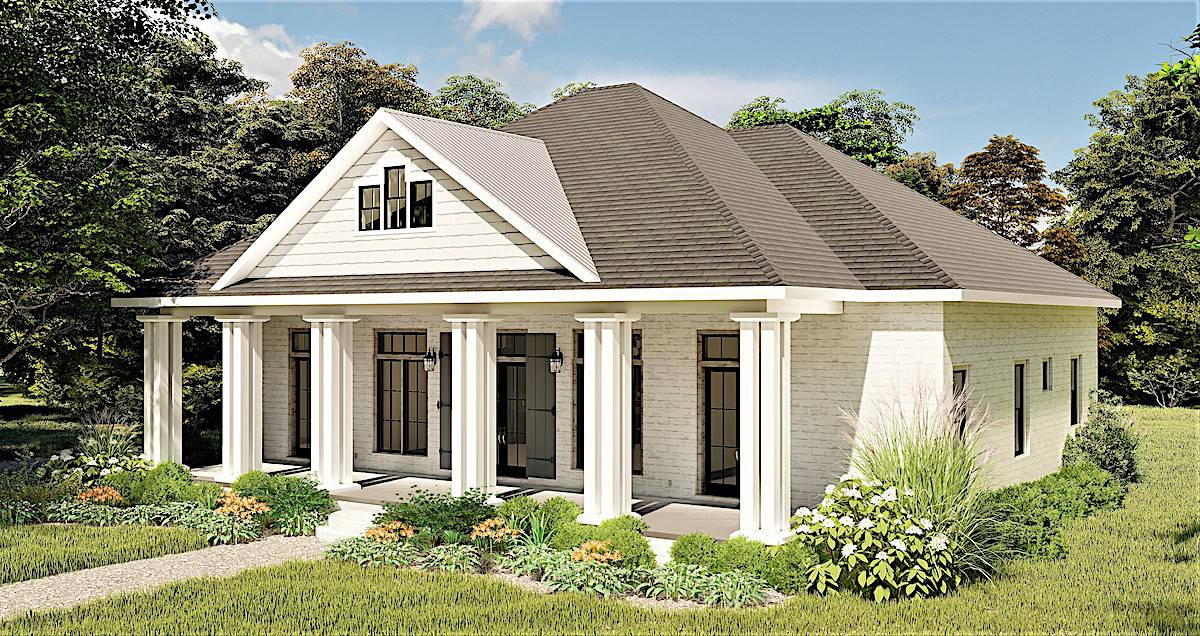 This 2,160-square-foot (heated and cooled) Ranch-Georgian style home may be the perfect one for you and your family with a 60’-0” wide x 72’-0” deep dimension. This little cutie echoes the smaller homes of yesterday while hiding the extra space and modern floor plan inside. This would be the perfect home for retirement, vacation getaway, or a starter home! There's no wasted space here.