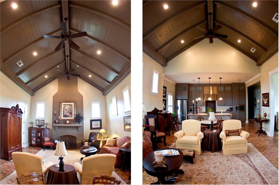 This traditional-style house invites you inside from the large front porch. Step inside the home and right into the beautiful living room, which features wonderful vaulted ceilings and a built-in fireplace. From the living room, you can enter the formal dining room, with its elegant 11-foot-high ceilings. The living room seamlessly flows into the kitchen, which features a large island with a built-in eating bar. From the kitchen, you can enter a hallway that leads to the home plan's half bathroom, main-floor laundry room, and the two-car, rear-entry garage. The garage...