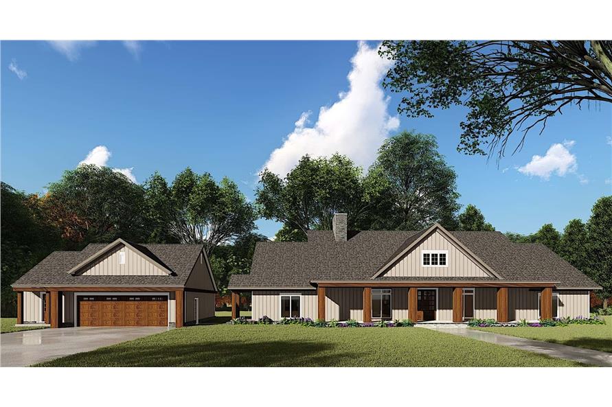 If you are someone who loves a country style living, this Ranch style home may be for you. The columns on the front porch, varied asphalt shingle covered rooflines, natural wood, and vertical board-and-batten wood siding give this house an interesting character. The 1-story floor plan has 2191 square feet of conditioned living space and includes 3 bedrooms, 2 full bathrooms, and 1 half bath.