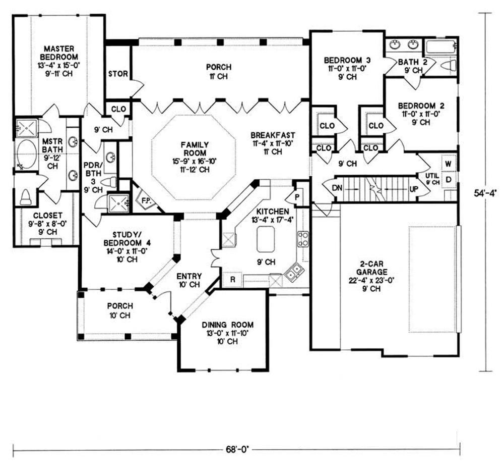 This inviting ranch style home with traditional design influences (Plan #120-1977) has over 2200 square feet of living space. The one story floor plan includes 3 bedrooms.