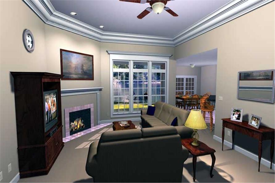 • Great room has 12-foot ceilings and fireplace with gas logs.