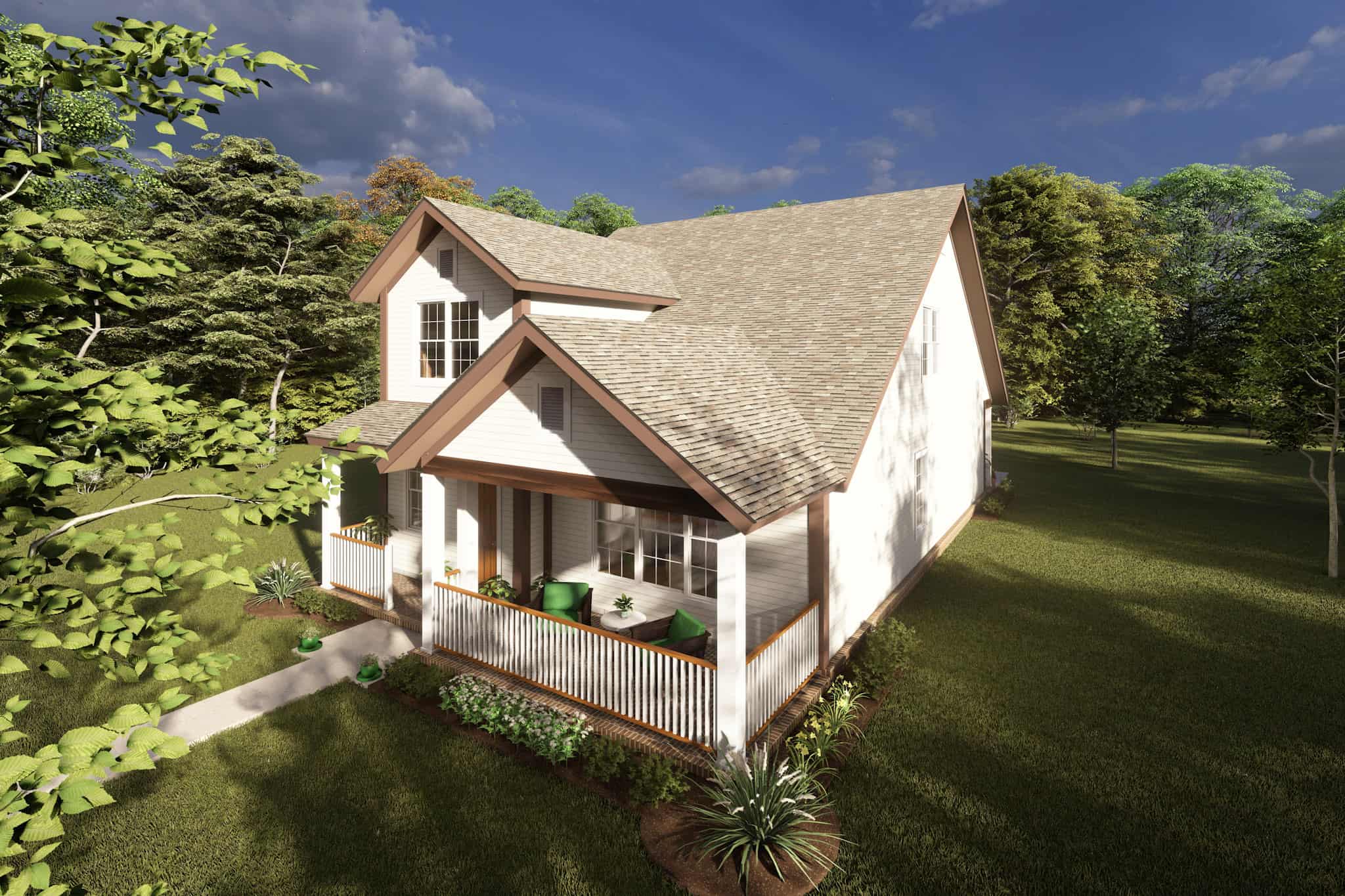 This lovely cottage home with Craftsman influences (House Plan #178-1218) has 2232 square feet of living space. The floor plan includes 4 bedrooms and 3.5 bathrooms.