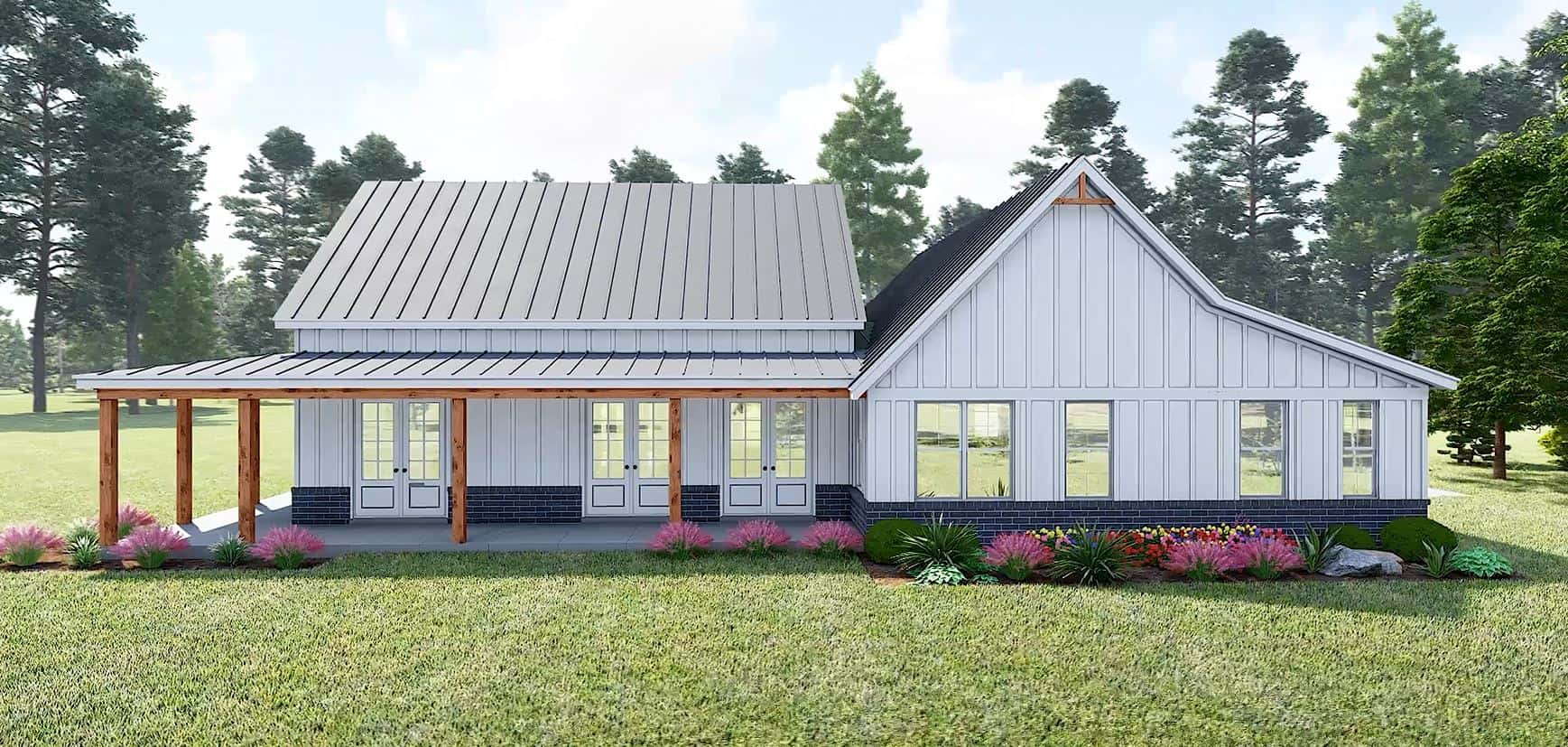 Boasting 2247 sq ft of heated livable space, 3 bedrooms and 2.5 bath, this farmhouse is cozy and pleasing. In addition it has a friend's entry, vaulted family room, primary suite with closet and primary bath, kitchen island, breakfast area, walk in pantry, front/rear/side porches. 8:12 is the primary roddf pitch and the secondary roof pitch is 12:12. It has a 10 Lbs snow load rating and 2x4 exterior walls.