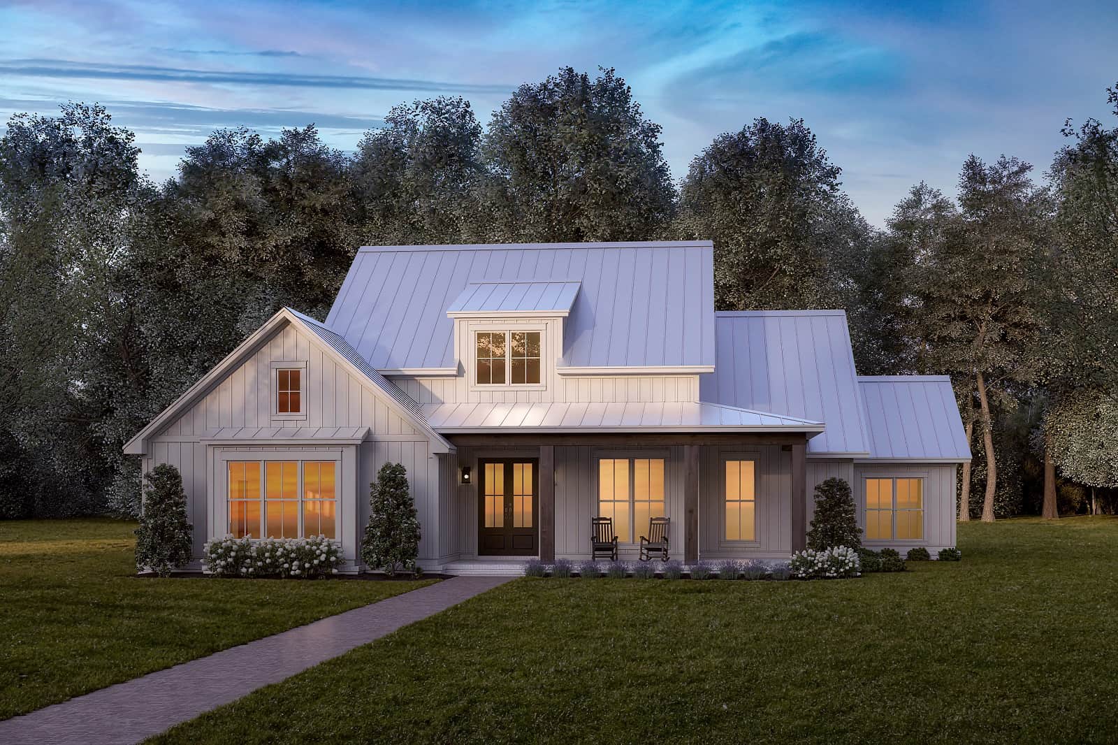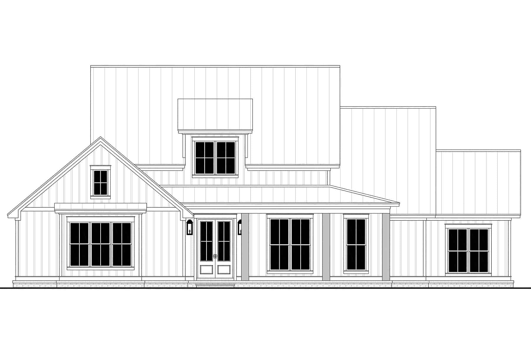 This single-family Contemporary Ranch Style House Plan has 2258 living square feet, 4 bedrooms, 3.5 bathrooms, and a 2-car garage space.