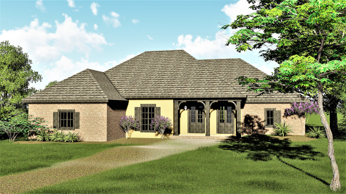 This lovely Country style home plan with Southern influences (House Plan #123-1079) has 2291 square feet of living space. The 1 story floor plan includes 3 bedrooms, 2 full bathrooms, and 1 half bath.