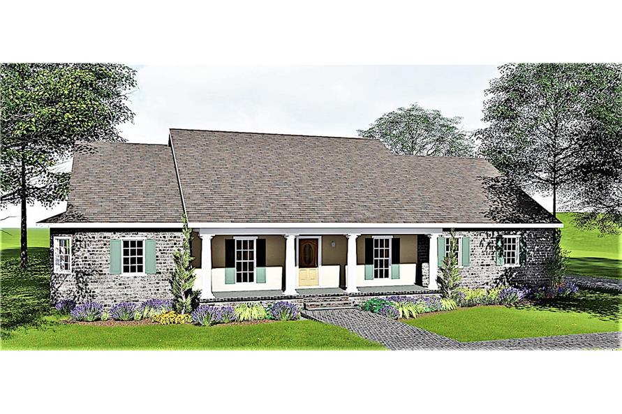 This house features large rooms, two covered porches, and a three car garage. The floor plan is funtional and simple.