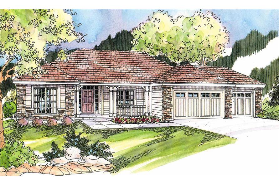 The #108-1130 home plan is a single story, Ranch Style house plan that has 2316 total living square feet. Multi-paned windows, cultured stone veneer, and a nostalgic covered porch beckon people to enter this ranch home plan. The abundant natural light washes into the vaulted entry and great room linked to the large kitchen. The owners' suite is a quiet, well-isolated retreat with a roomy walk-in closet and private bathroom with a spa tub.