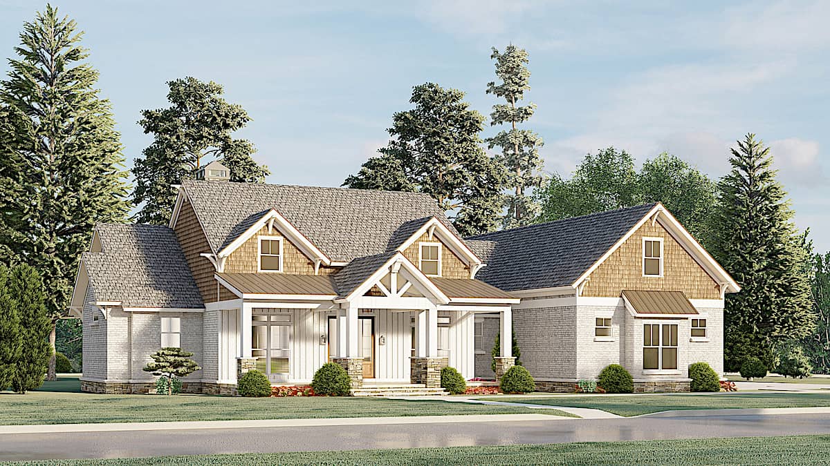 Welcome to this simple yet elegant home! The varied roof lines, forward-facing gables, and well-balanced combination of natural materials give this Farmhouse style Ranch house a homey appeal. The sophisticated 1-story home's floor plan has 2351 square feet of heated and cooled living space. You’ll also love other amenities, such as