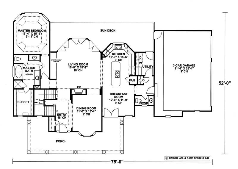 #120-1899 is a lovely two story Traditional/Country Style Home Design with plenty of space and a lot of places for family time. The Living Room is perfect, whether you want to sit in front of the fire, walk out on the beautiful sun deck, or maybe just access the island kitchen/breakfast area. If you want a more quiet setting, you could try the main floor master bedroom or the second floor study. This House Plan is perfect for your family.