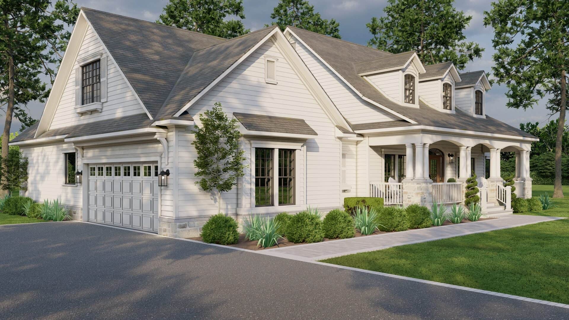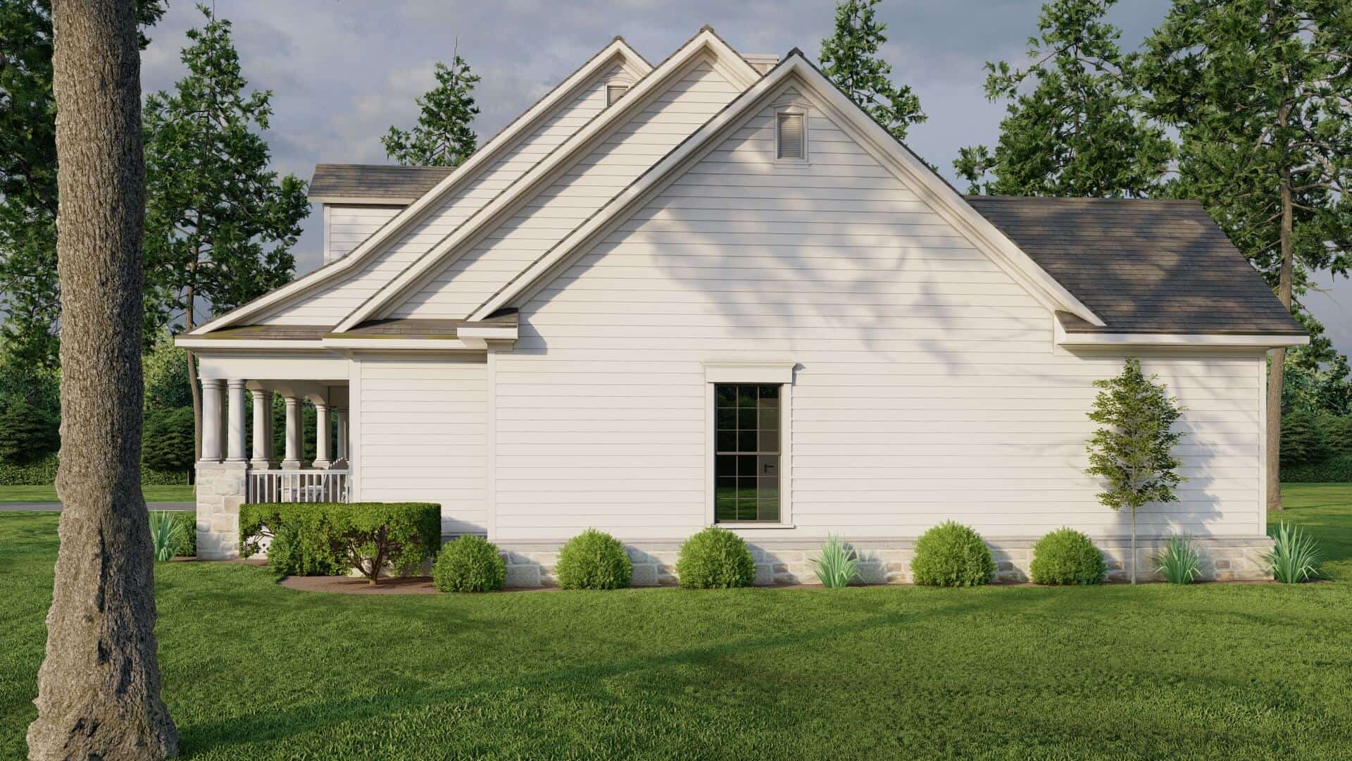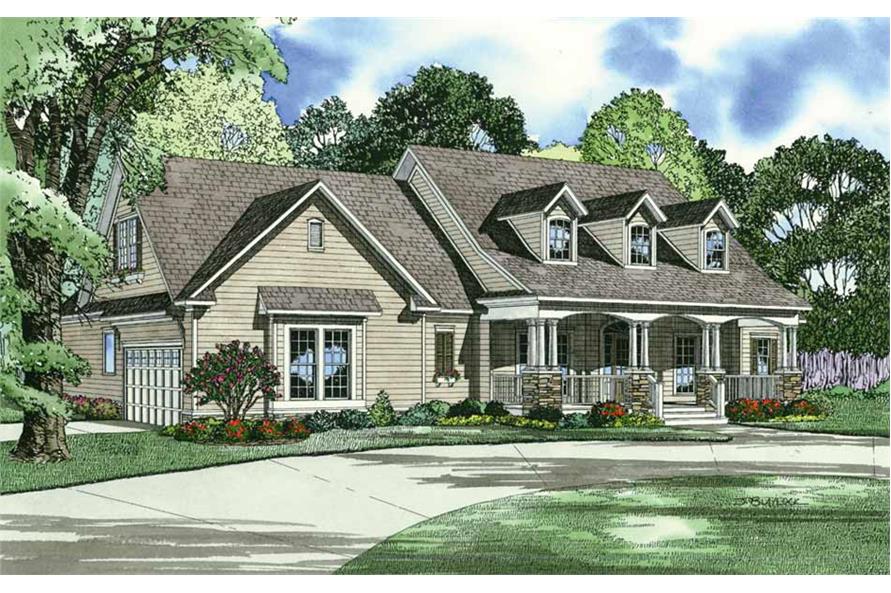 This country cape code style home encamps warmth of country with classic southern tradition in a detailed porch with round columns on rock and stone pillars. The spacious great room has a built-in media center, fireplace with views to the large rear grilling porch. The kitchen is open to the breakfast area, access to the dining room and an eating bar.