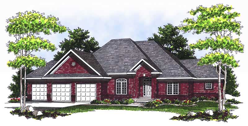 This traditional ranch home features a rear design with European flair with its two-story turret and a lovely Palladian window. Enter under a keystone arch into a foyer opens on the left through French doors, revealing a den or formal dining room. The great room boasts a cathedral ceiling, deck views and a fireplace framed by built-ins. The kitchen is ready to serve, with a snack bar that seats six, an island and easy access to the bayed casual nook. The master suite is tucked away for privacy accented by a tray ceiling and a dazzling bath with a corner tub. Two secondary bedrooms share a...