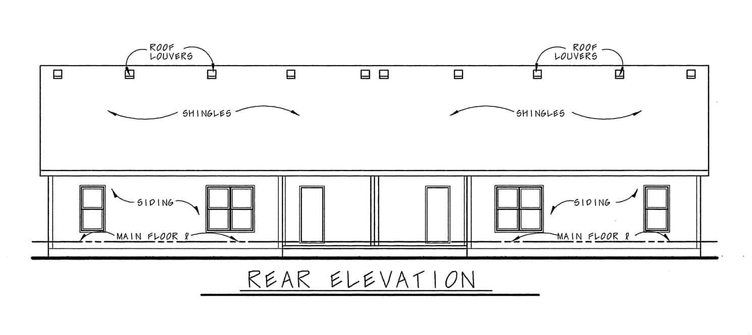 This Duplex house with Ranch design is a lovely home with a homey country feel that features a covered front porch area with the turned columns and decorative porch railing. The clapboard siding and pleasant windows in front contribute to a natural, farmhouse-like curb appeal in rural or suburban surroundings. The elegant multi-family home's 1-story floor plan has 1195 square feet of heated and cooled living space in each unit and includes 3 bedrooms in each unit. Each unit also has a 430-square-foot two-car garage.