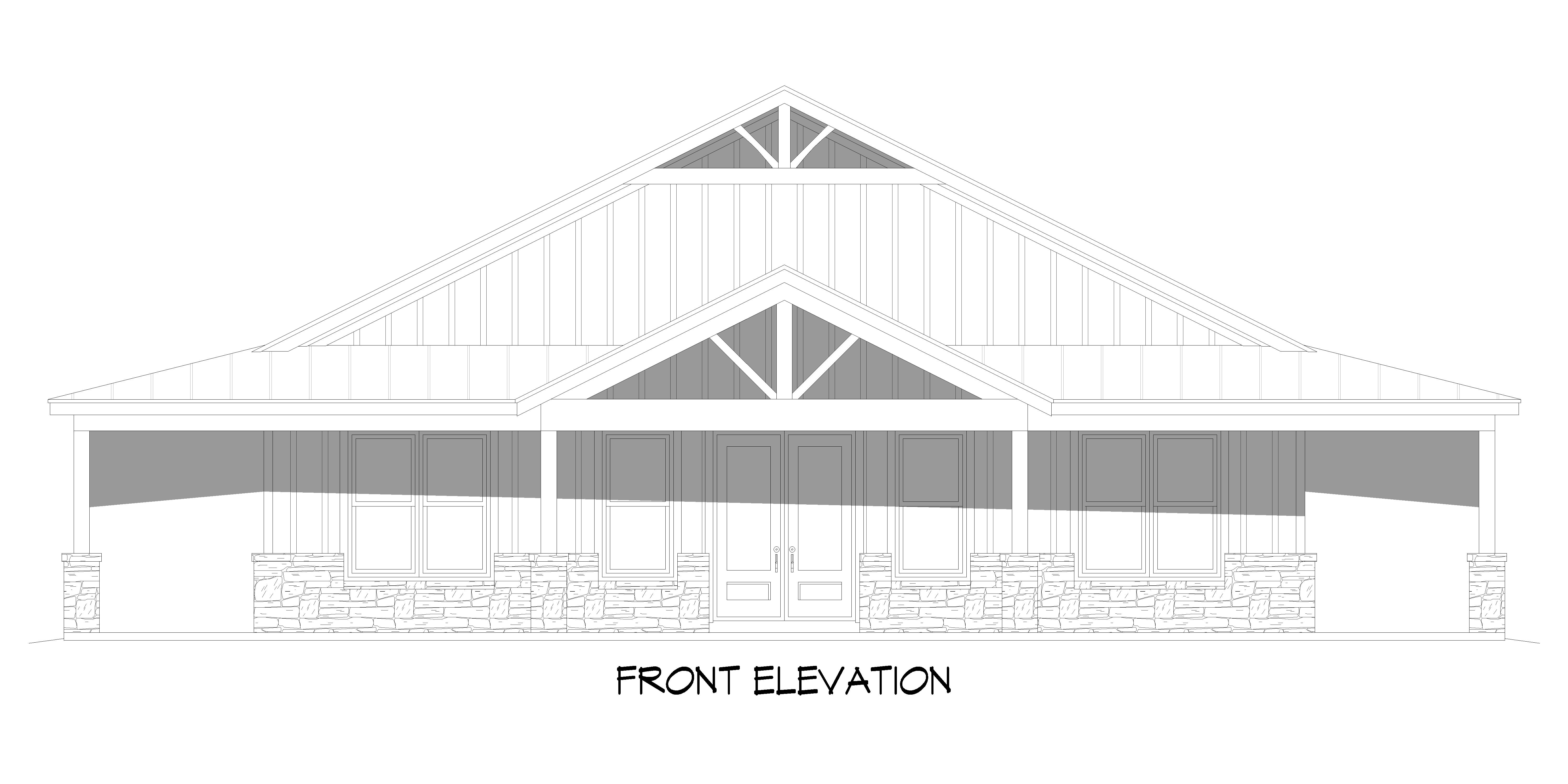 Front elevation of Barndominium home (ThePlanCollection: House Plan #196-1842)
