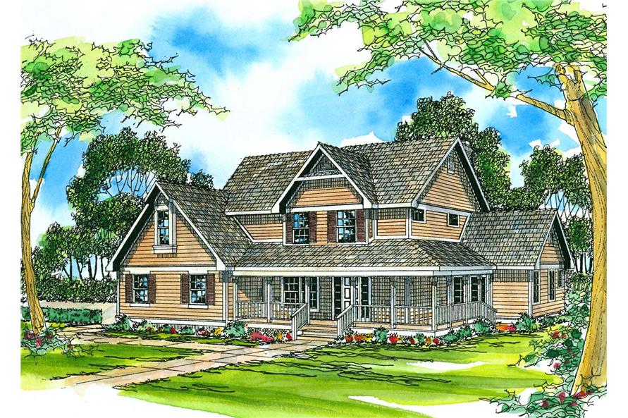The #108-1479 home plan is a two story, country style home plan with 2423 total living square feet. This country home plan features a corner kitchen that is wide open to the vaulted sunroom and great room. The vaulted master suite has a huge walk-in closet, shower, spa, and twin lavatories. The second floor balcony/loft overlooks the great room and entry.
