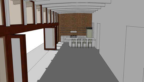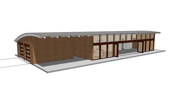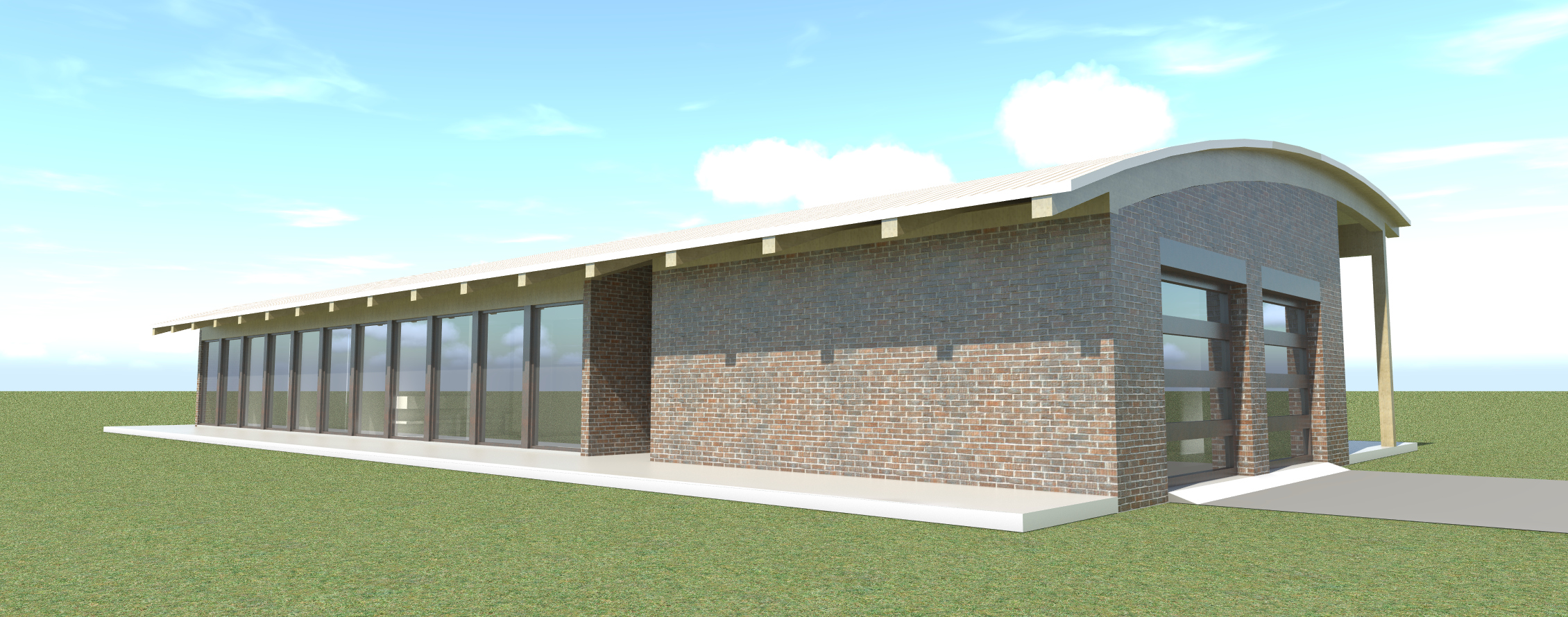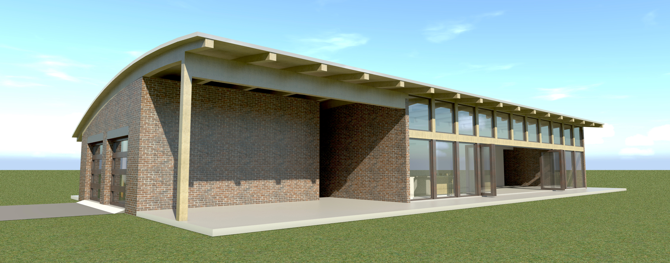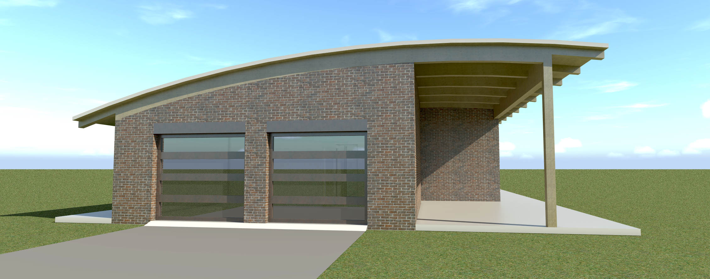 Spades is a modern home with a 'loft' style living space. It has 4 bedrooms with lots of storage and the laundry area directly off the hall. The floors are colored concrete. Folding doors open the entire living space to the outdoors. In front of the garage is a covered sitting porch under a cantilever roof.