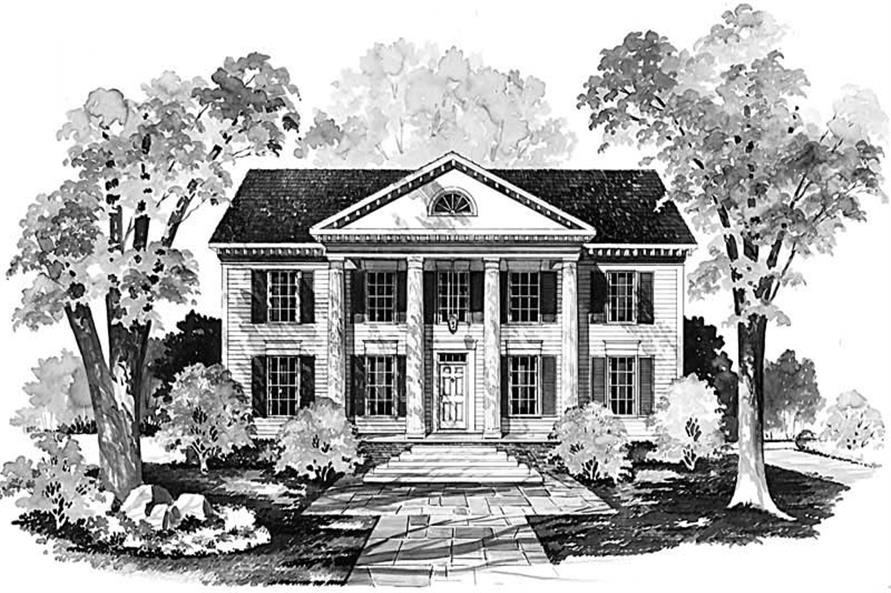 Greek style house plan with a beautiful protico in the front and a lart terrace out the back.